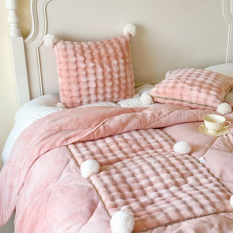 新款兔毛绒牛奶绒毛球抱枕被轻奢办公室午睡被子二合一车用靠垫被