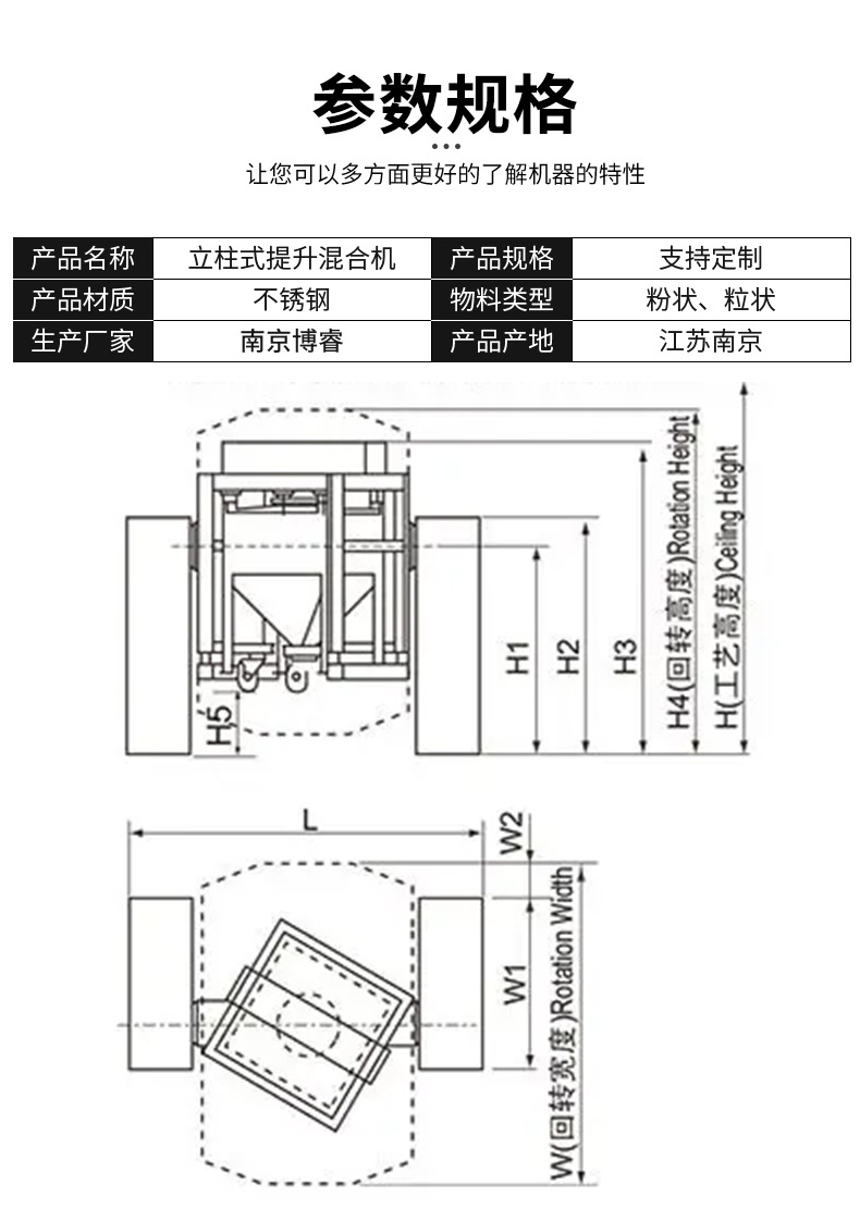 立柱式リフトミキサーメーカーステンレス食品乾燥粉ミキサー立式ミキサー混合設備