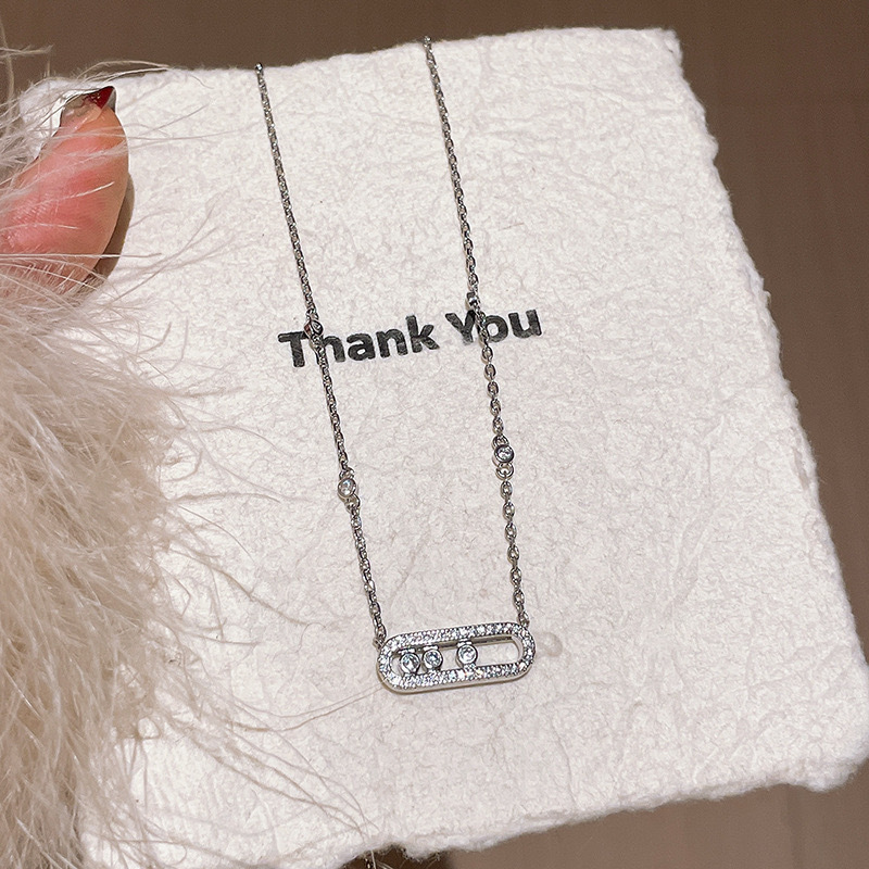 925純銀梅家ネックレス、ムーブスライド式三石、母の日、520ギフト、4グラムの銀重、ファッショナブルで美しい