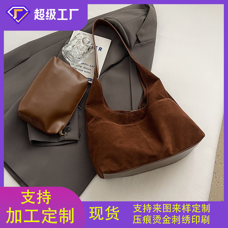 クロスボーダーレトロショルダーバッグレディーススエードつや消しトートバッグ大容量通勤ハイエンド脇の下ショルダーバッグ
