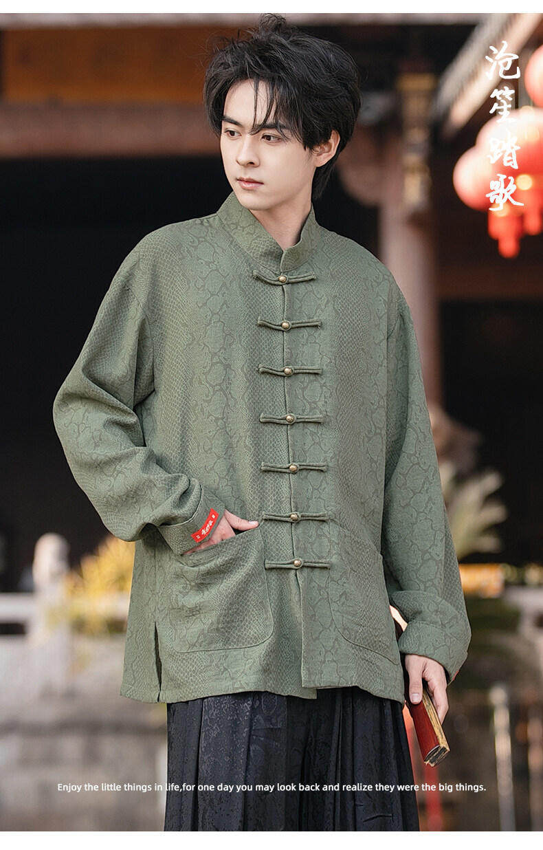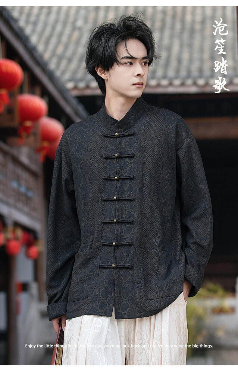 中国風メンズスタンドカラージャケット春レトロバックルジャカード新中国風唐装漢服大きいサイズ長袖ジャケット
