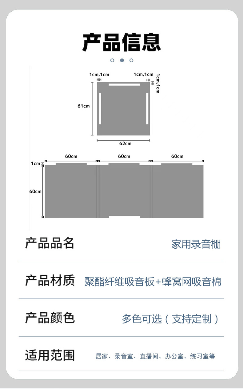 跨境定制简易桌面录音棚喜马拉雅有声主播除房降混底噪可拆卸折叠