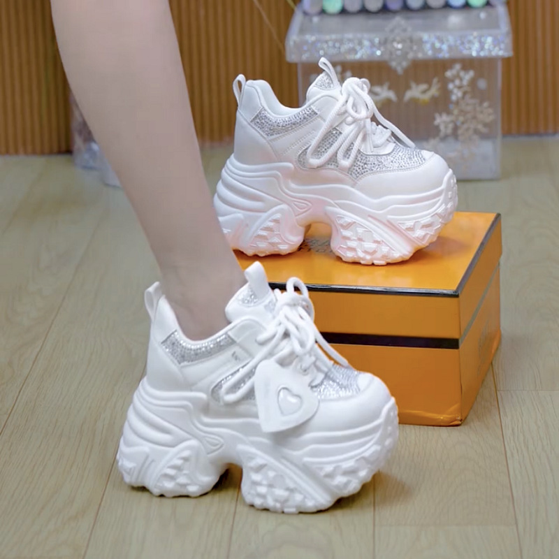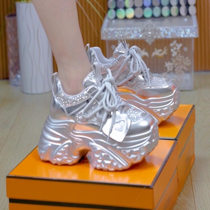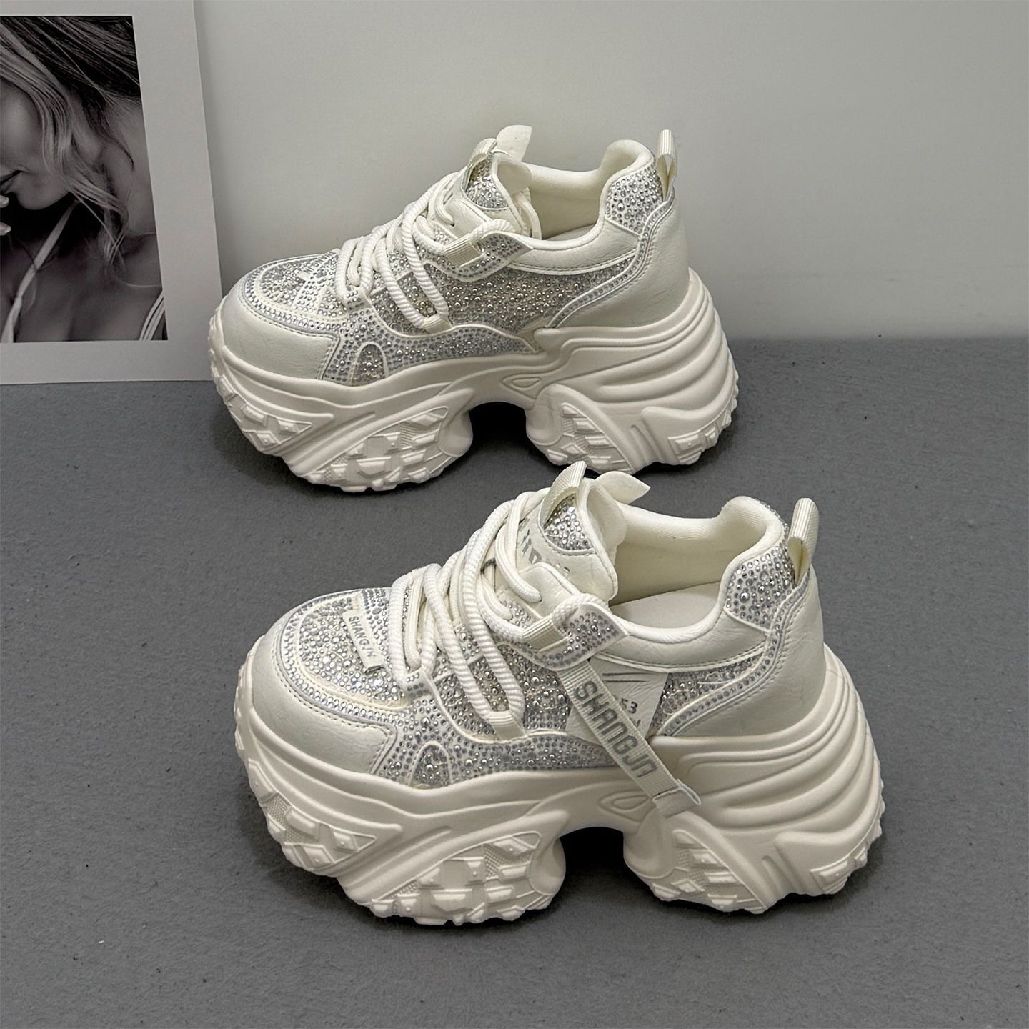 人気の厚底インナー高さアップダッドシューズ女性用 2025 夏の新作ラインストーンプラットフォームスポーツカジュアルシューズイントレンド