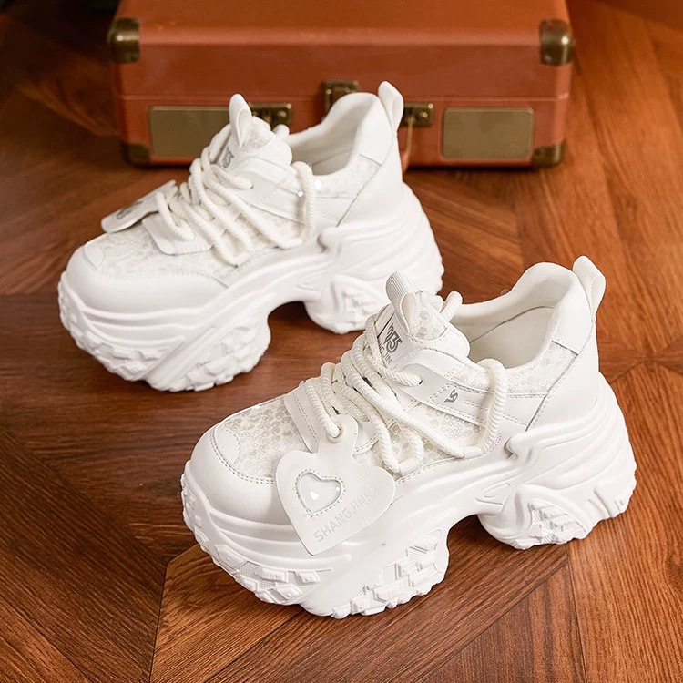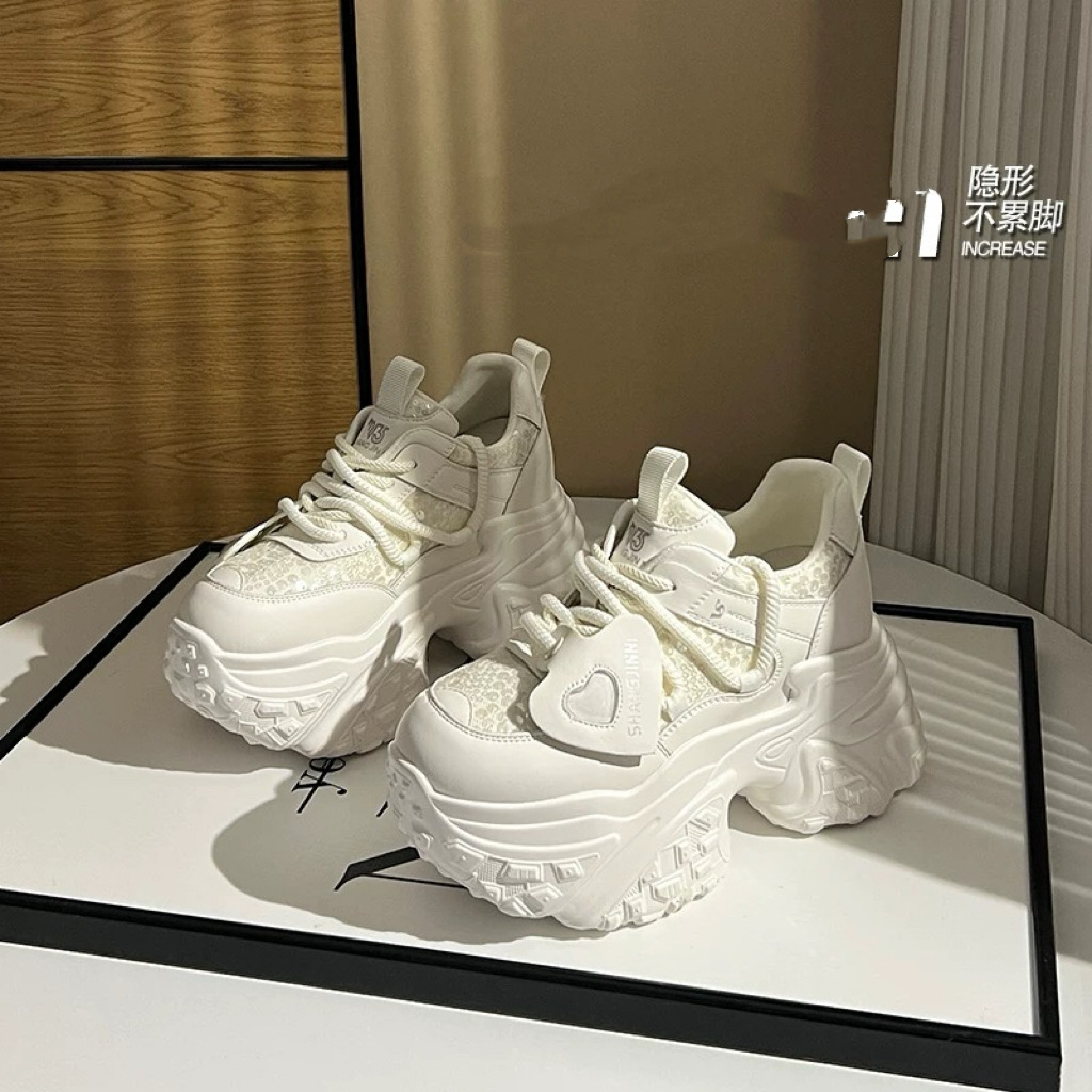 女性のための厚底白靴 2025 新作春と秋の多用途カジュアルスニーカーイントレンディな白露ニッチスポーツシューズ