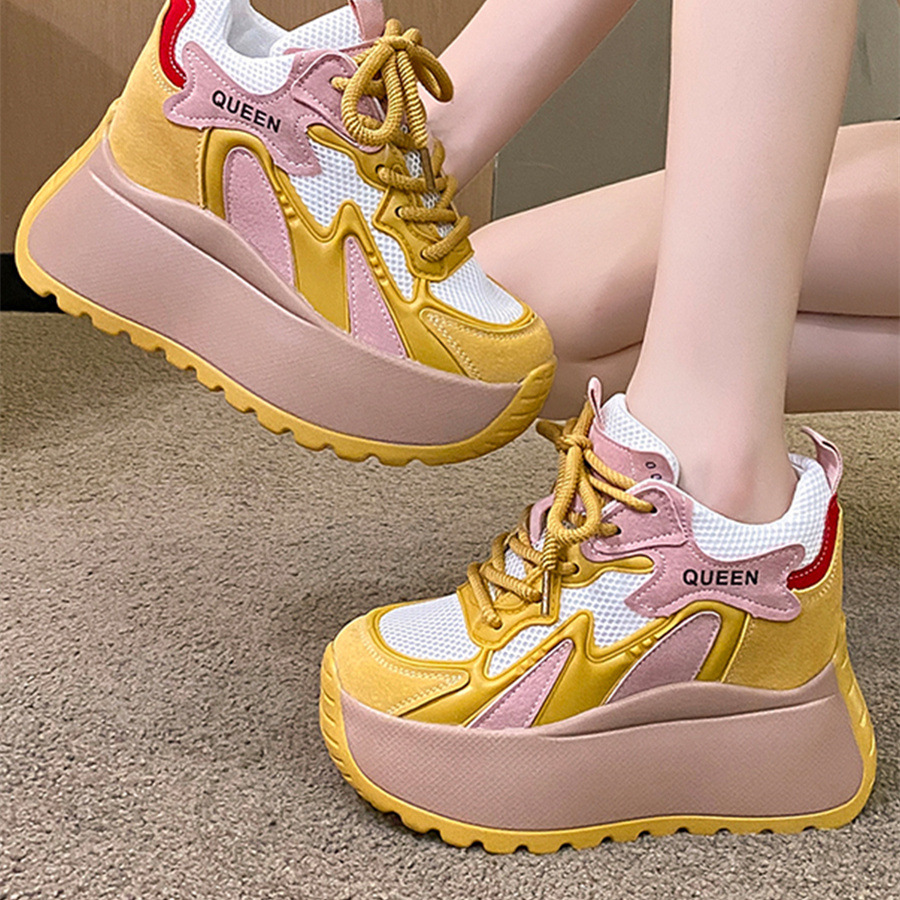 厚底老爹鞋女2025春季新款时尚百搭网面运动休闲鞋10cm内增高女鞋