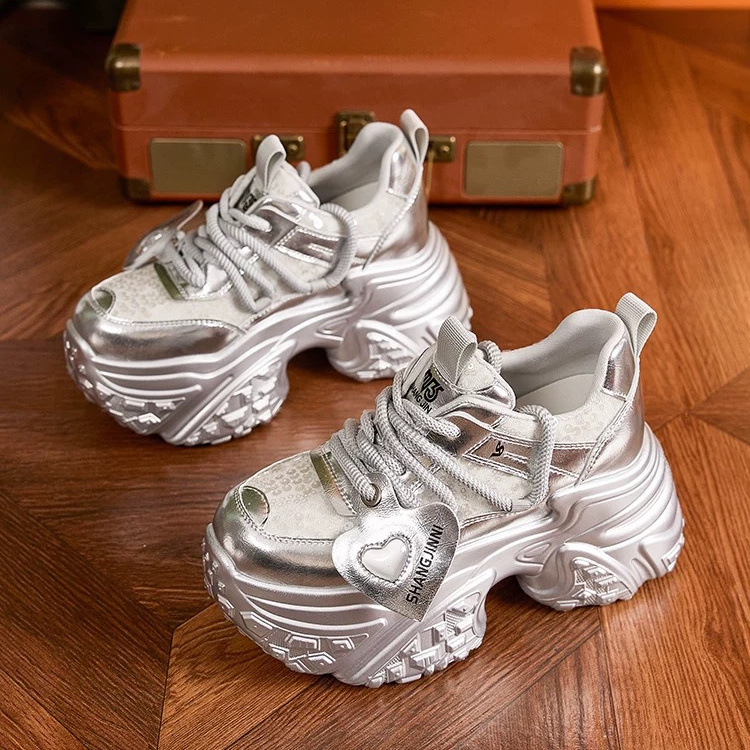 爆金の厚い底の中で高くなるお父さんの靴の女性の2025年の春と秋の新型のビスケットの運動のカジュアルな靴の卸売りは代行します。