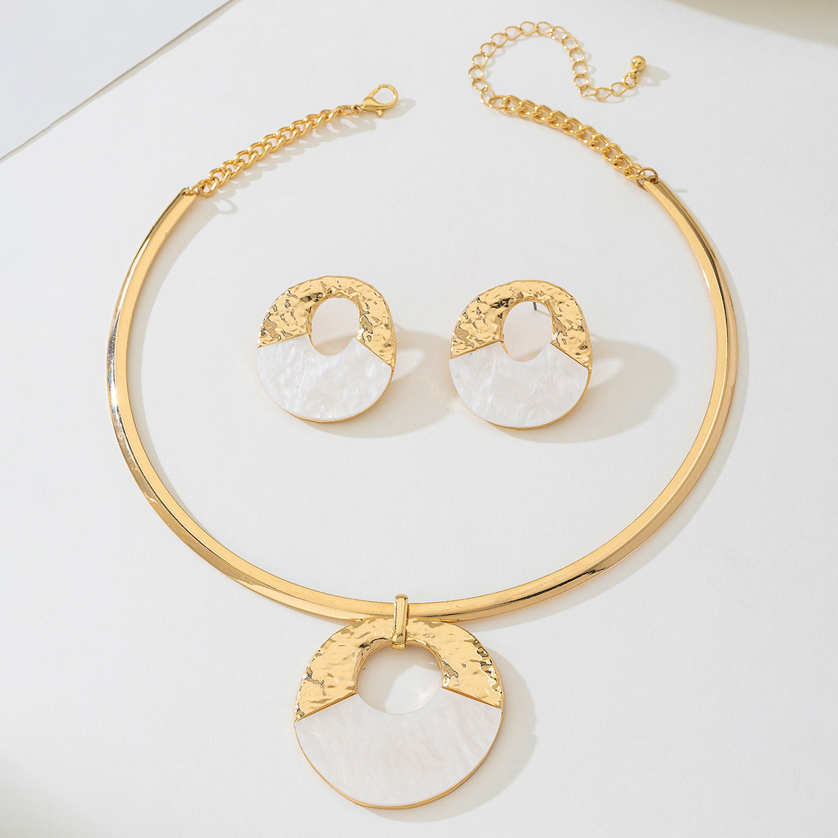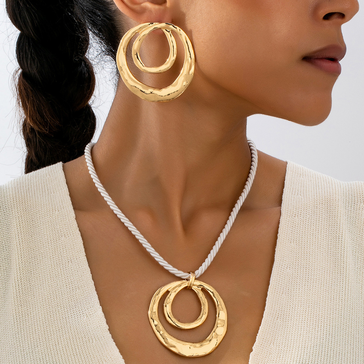 1セットの欧米のファッションの気質は金属の幾何学の円の女性のネックレスのイヤリングのアクセサリーのスーツを合わせて日常的に身につけます。