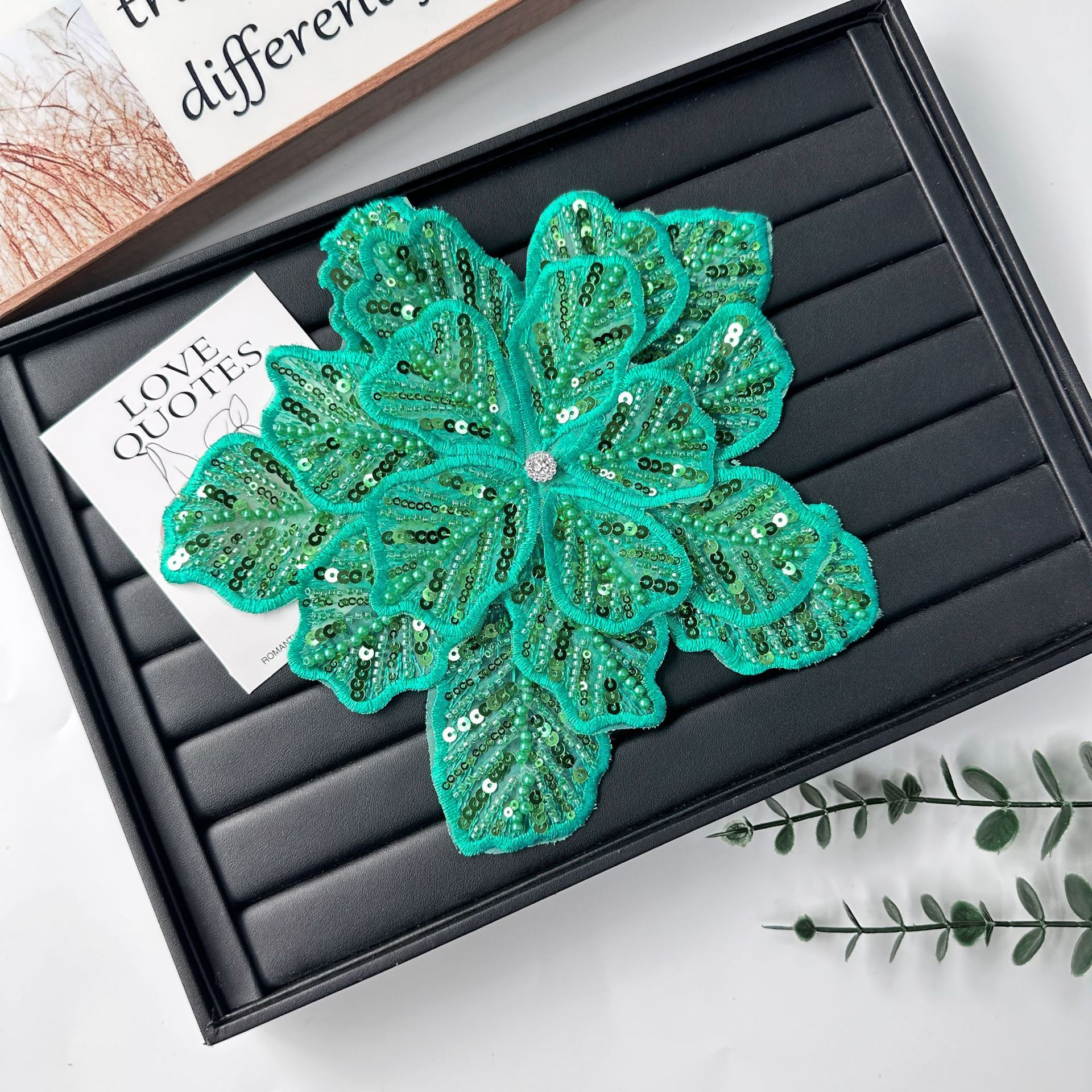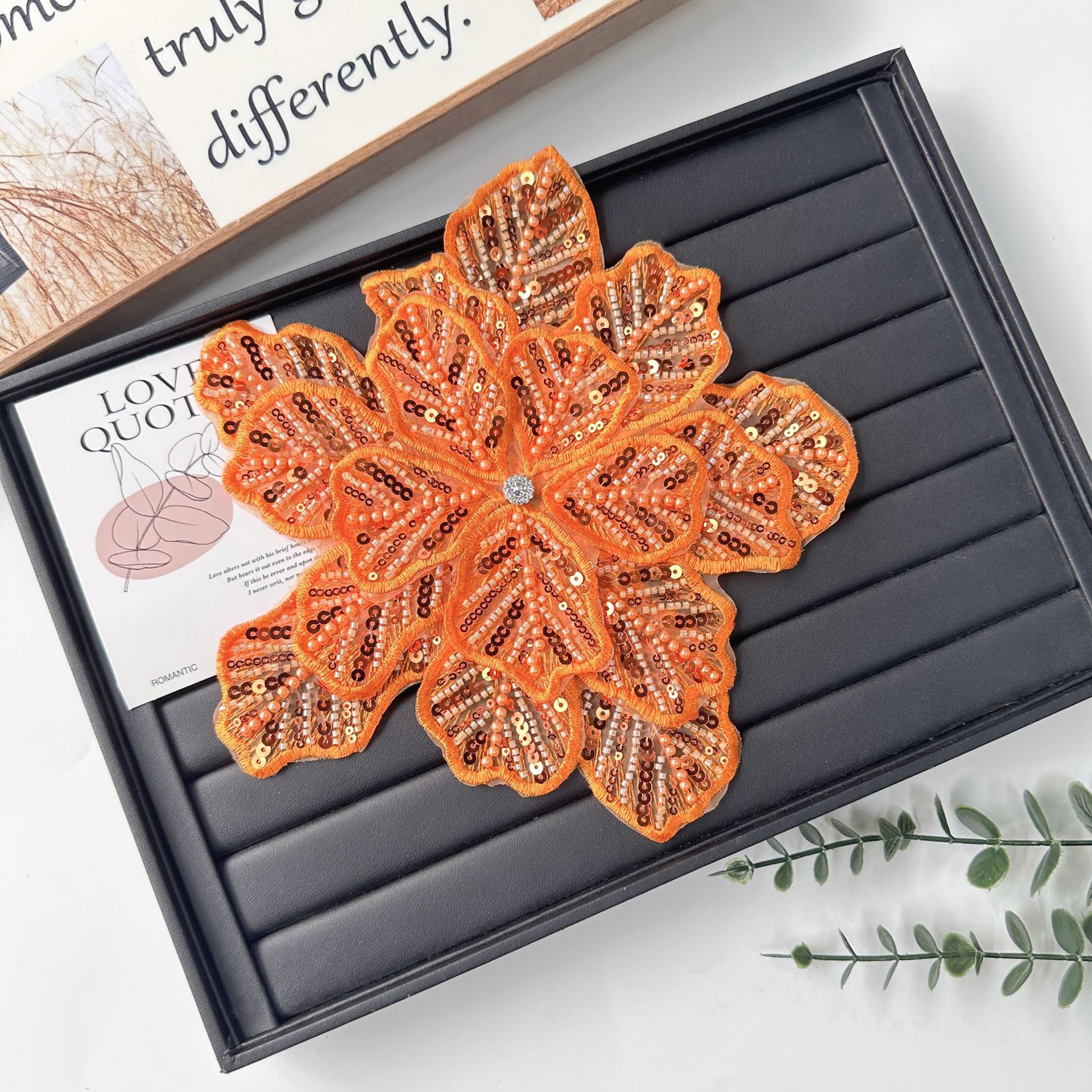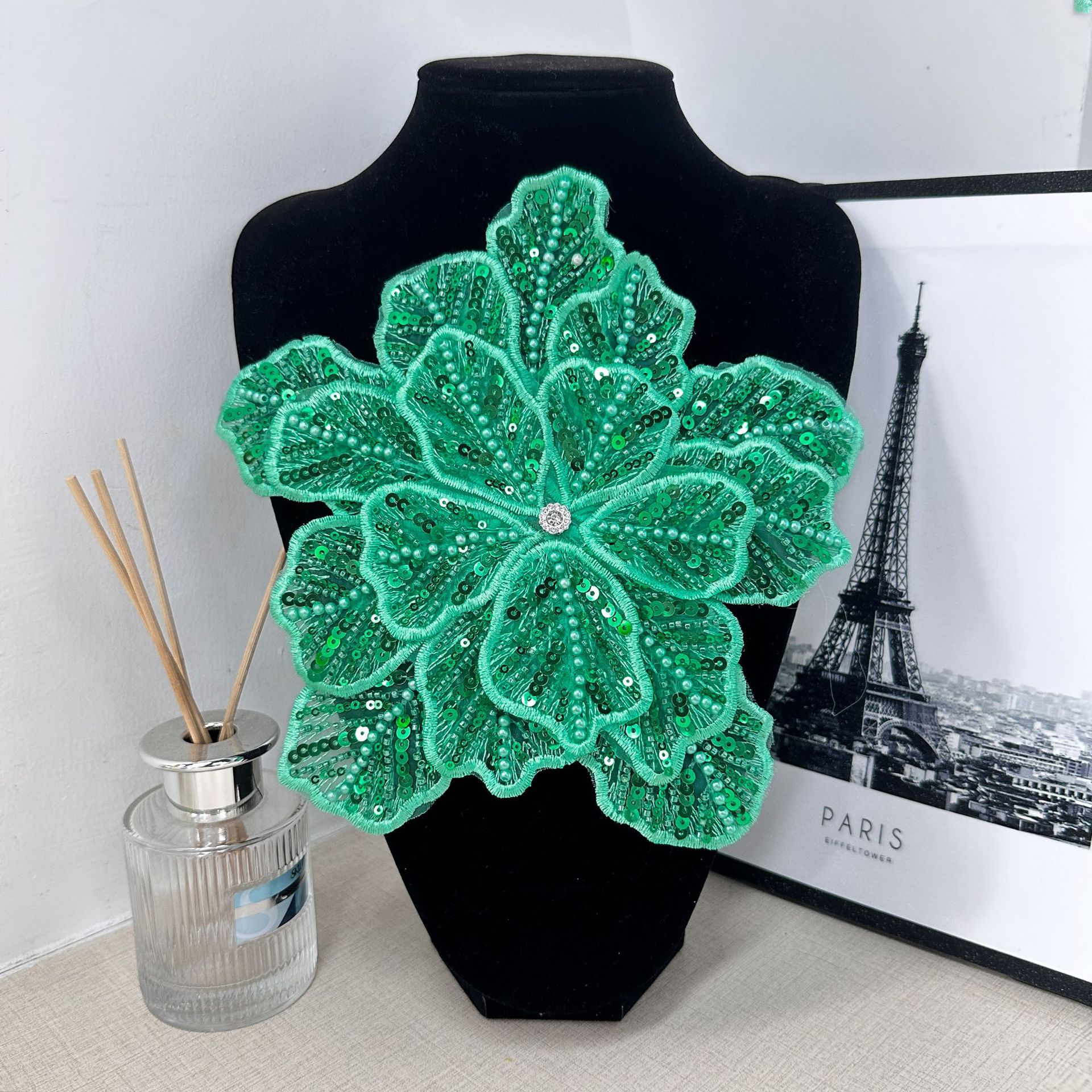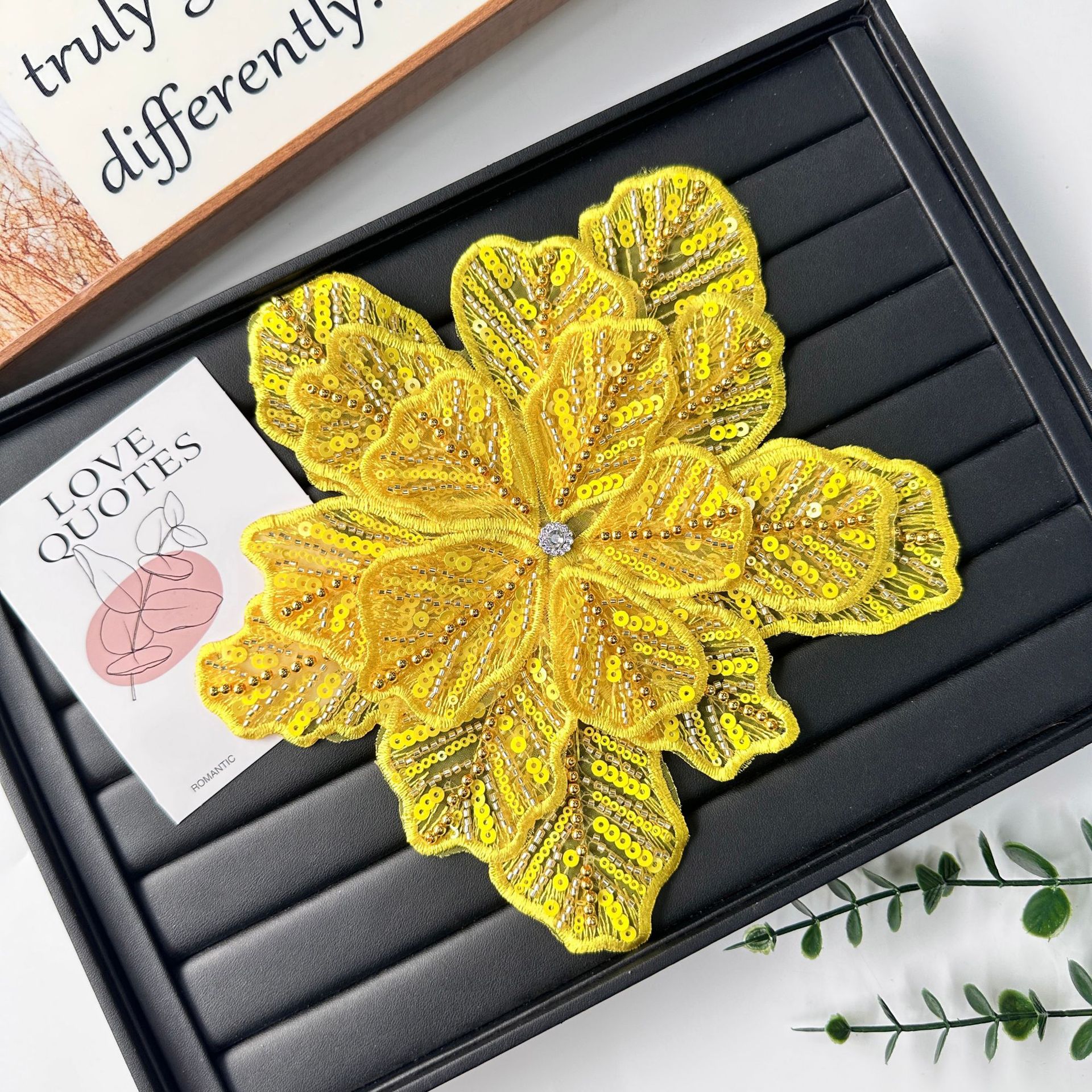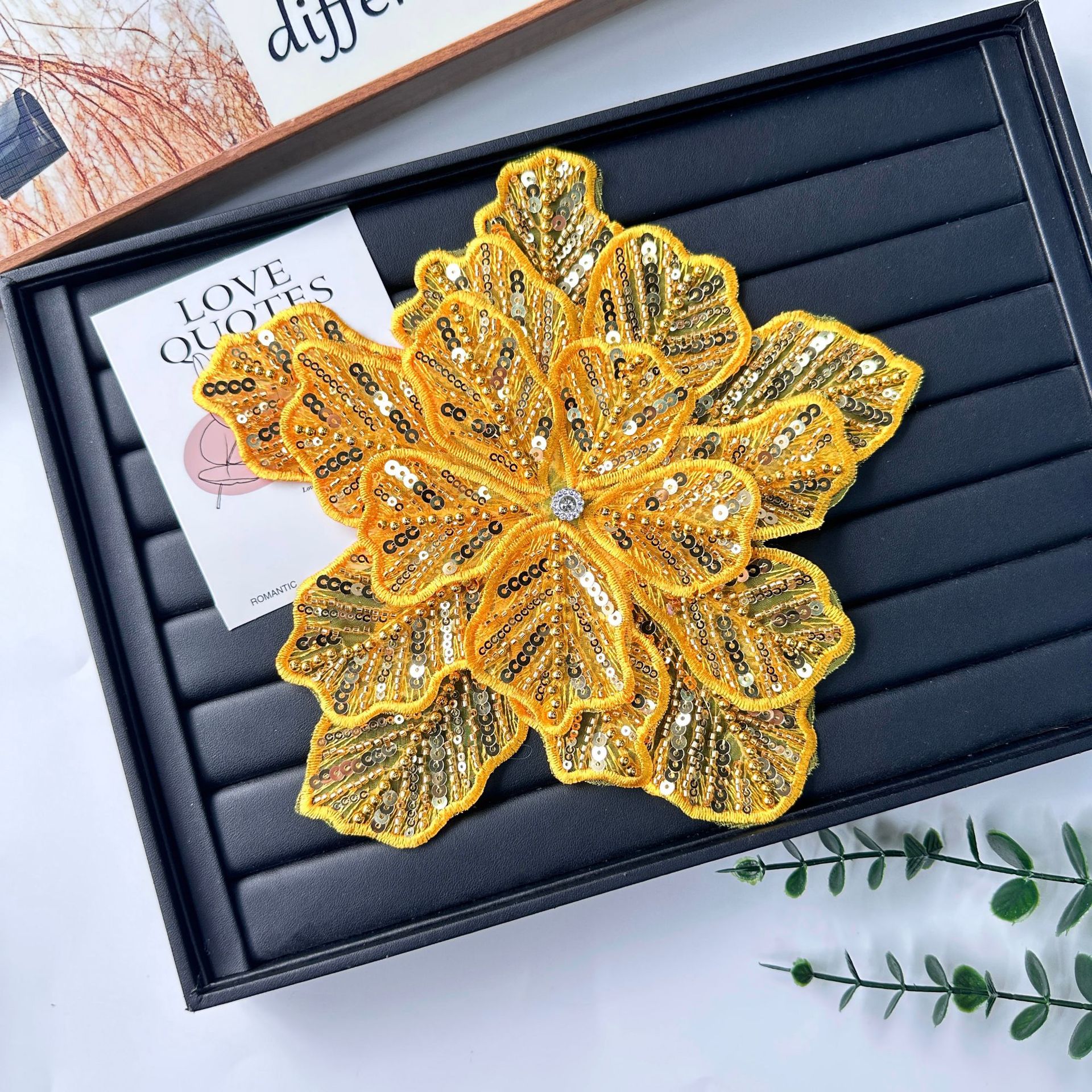 国境を越えた立体花珠花珠刺繍尖葉胸花布貼り立体明るい刺繍帽子パッチ対外貿易服装装飾