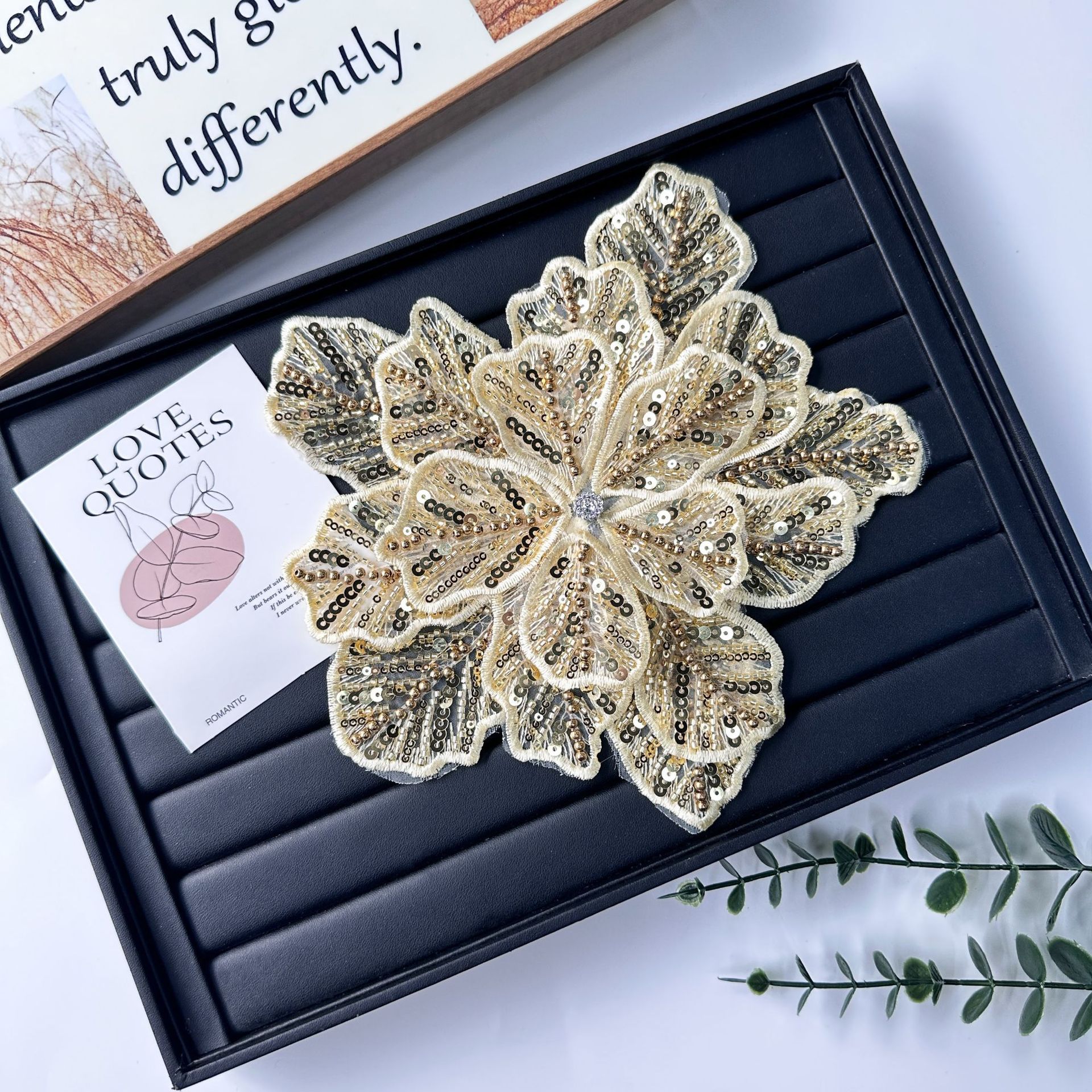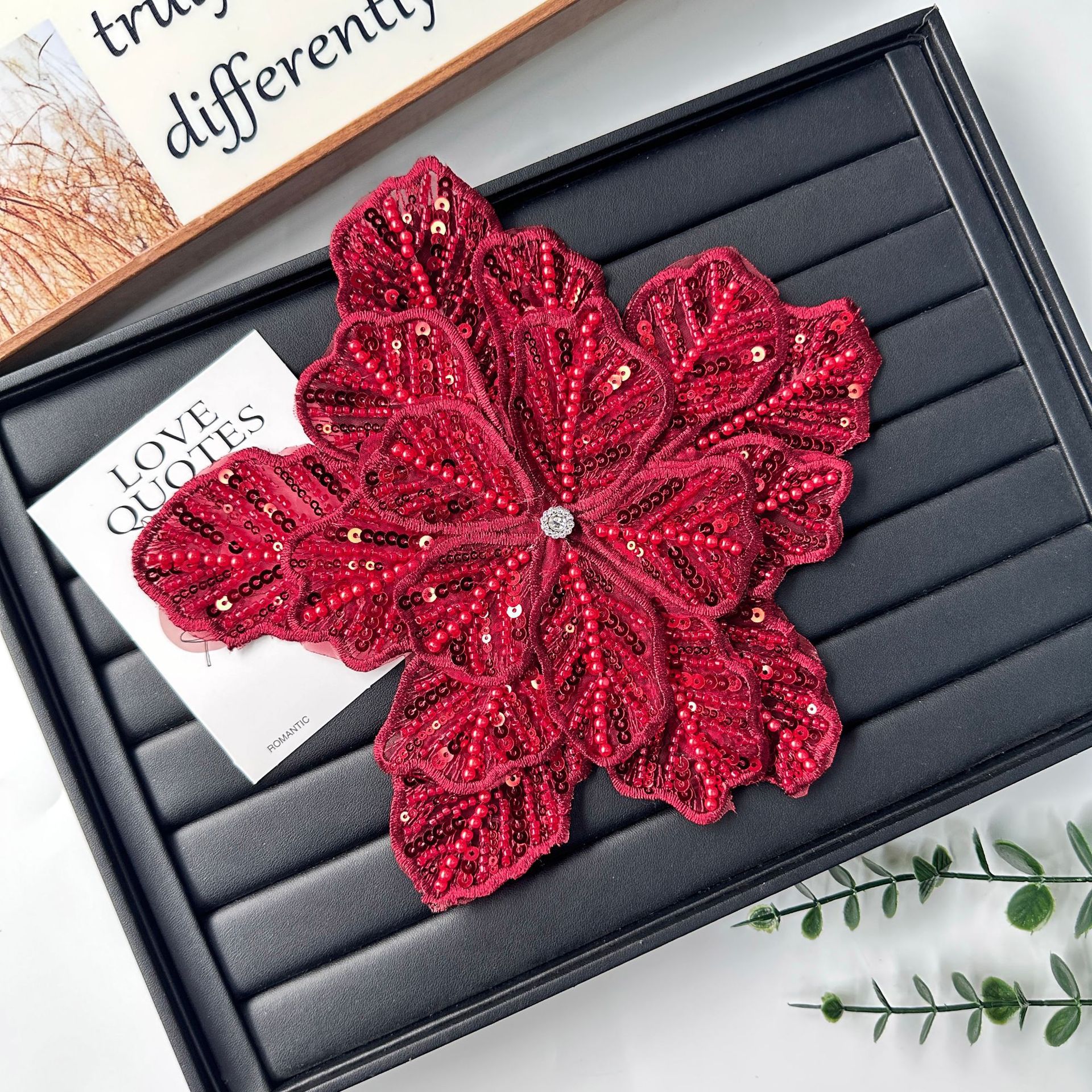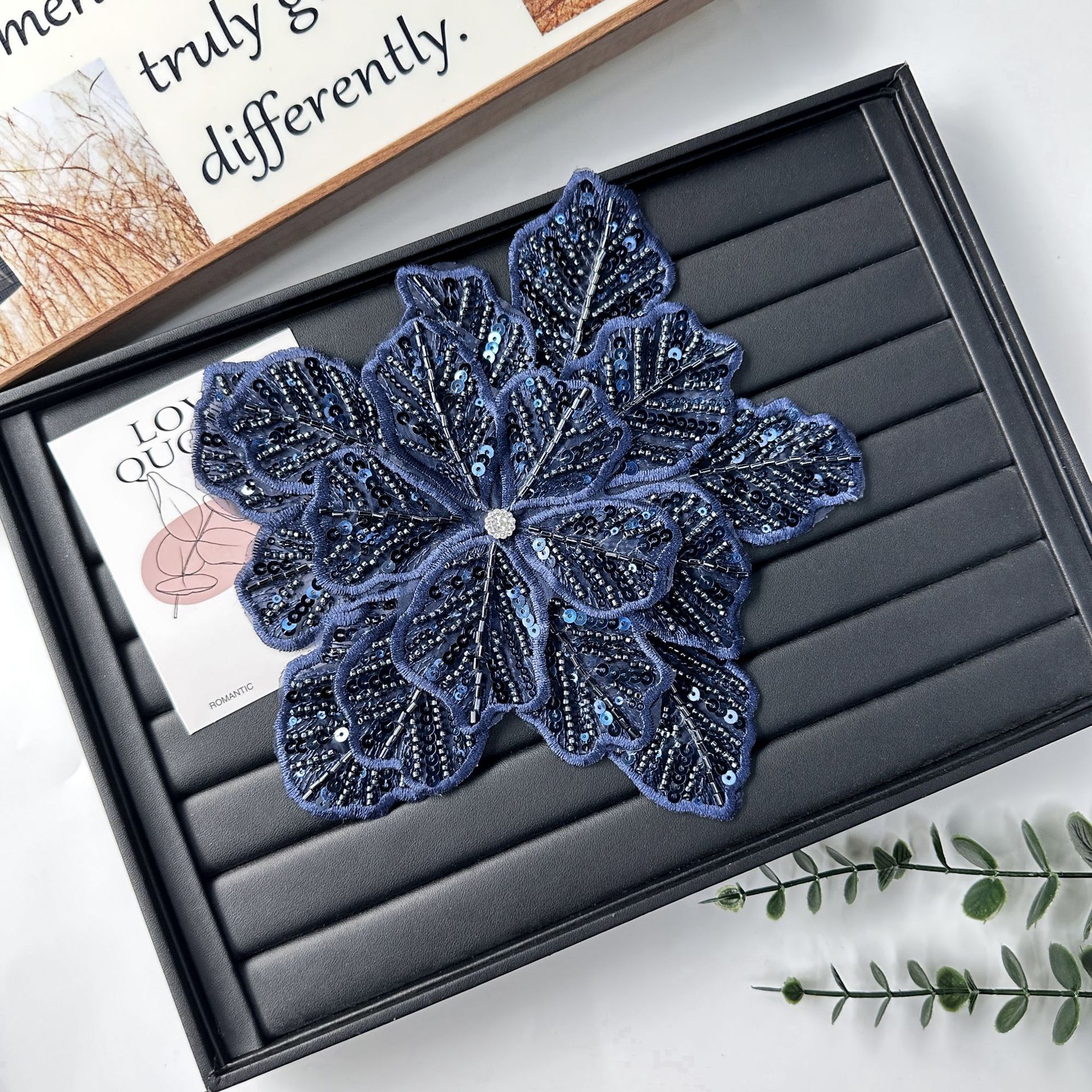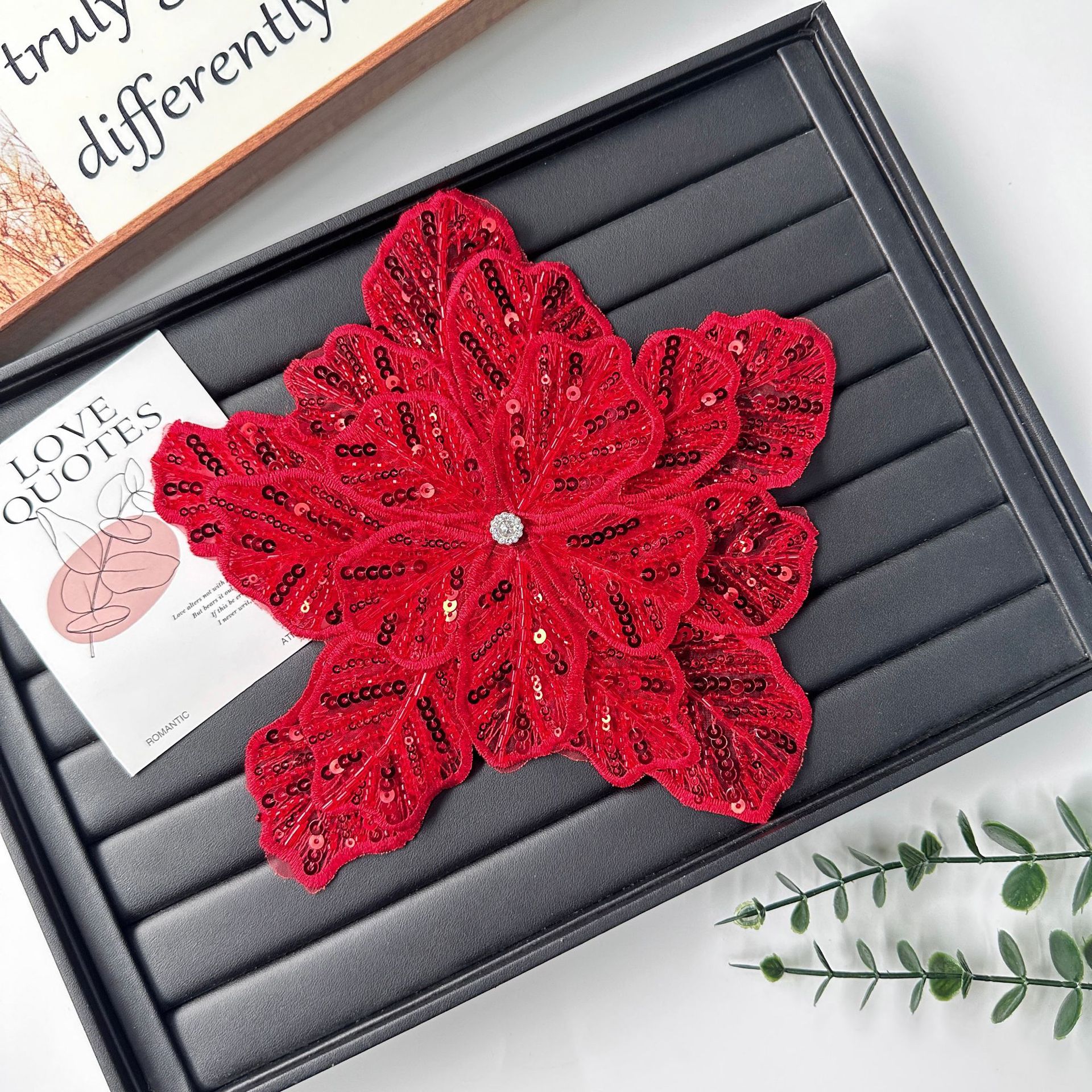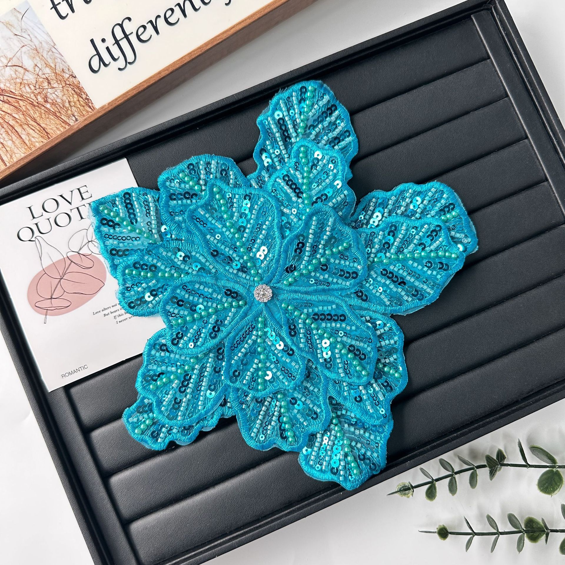 国境を越えた立体花珠花珠刺繍尖葉胸花布貼り立体明るい刺繍帽子パッチ対外貿易服装装飾