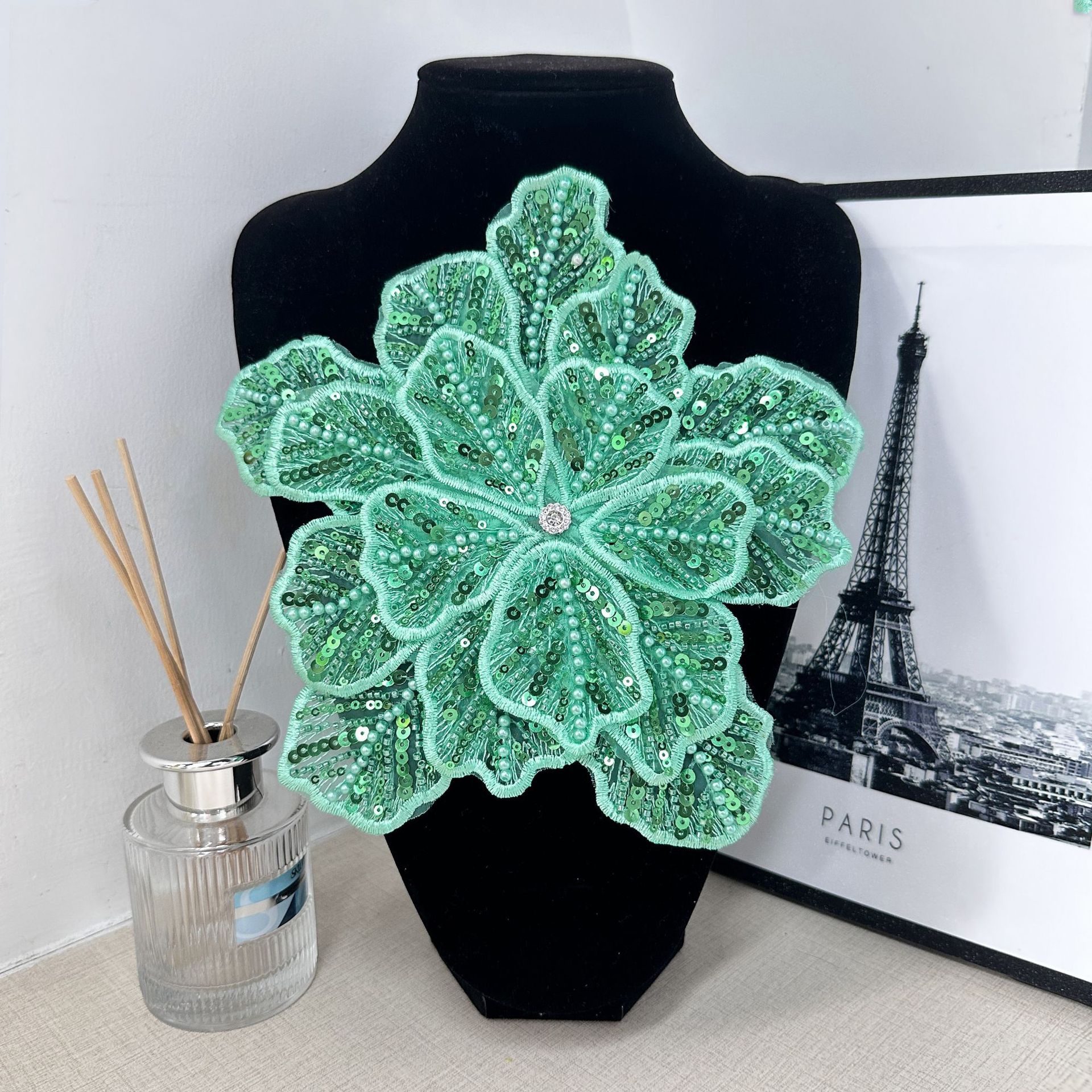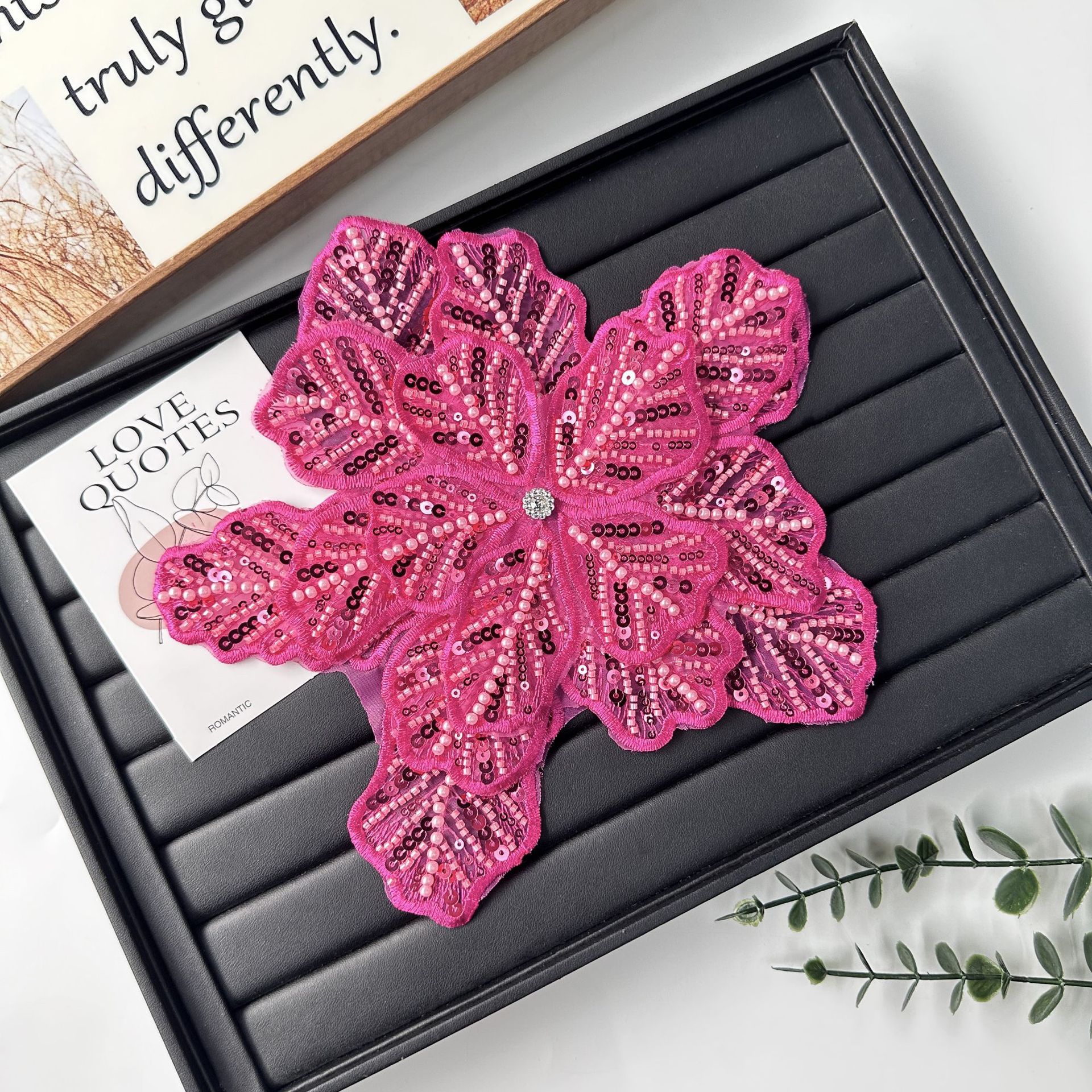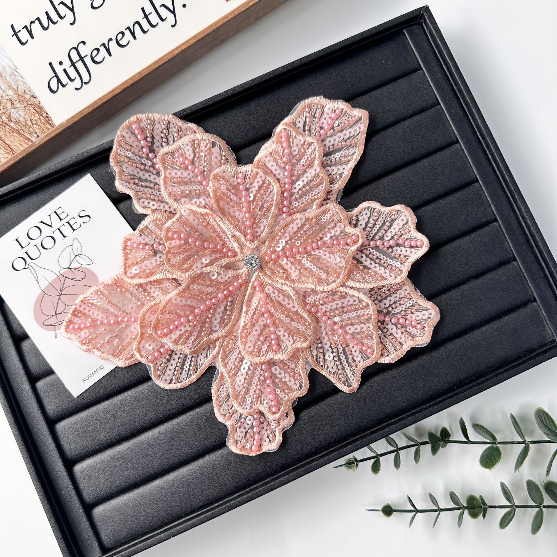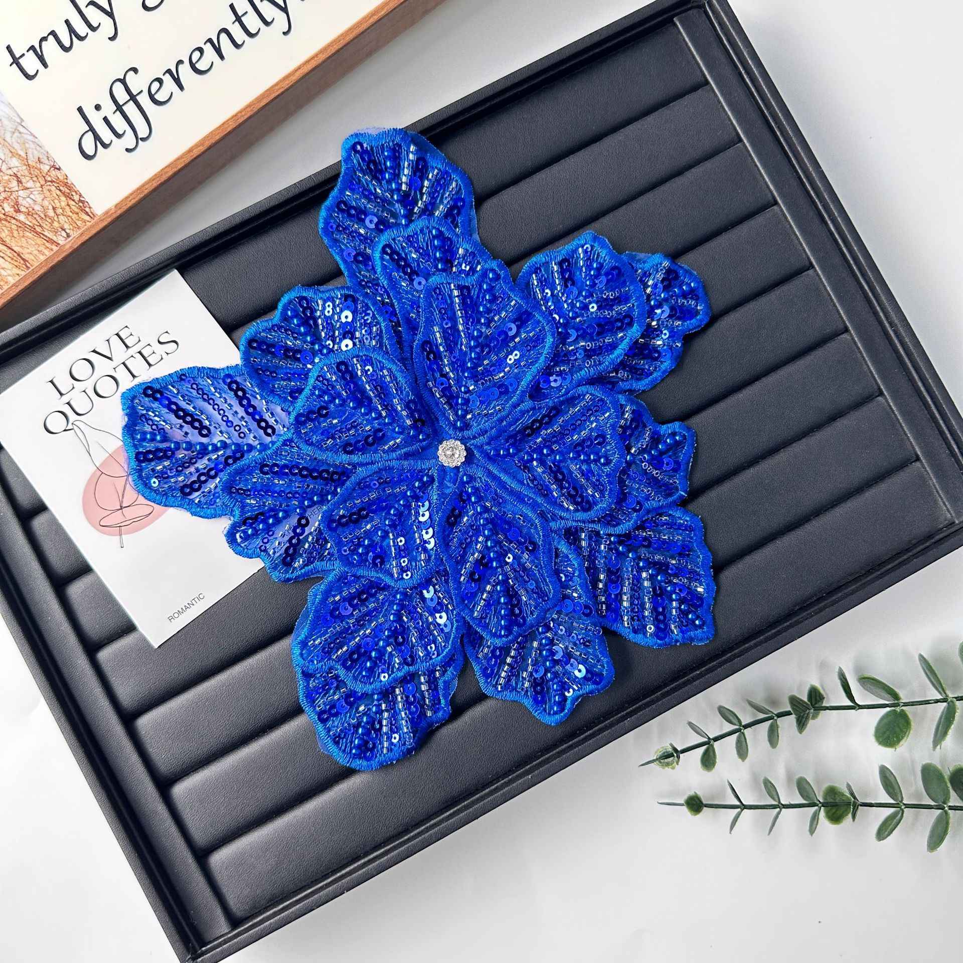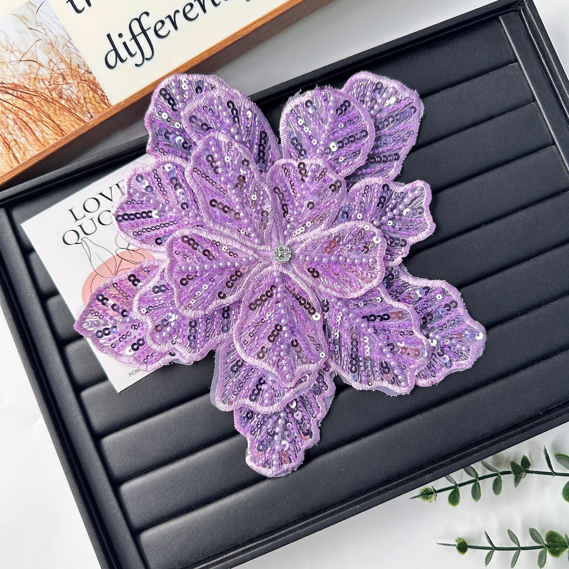 国境を越えた立体花珠花珠刺繍尖葉胸花布貼り立体明るい刺繍帽子パッチ対外貿易服装装飾