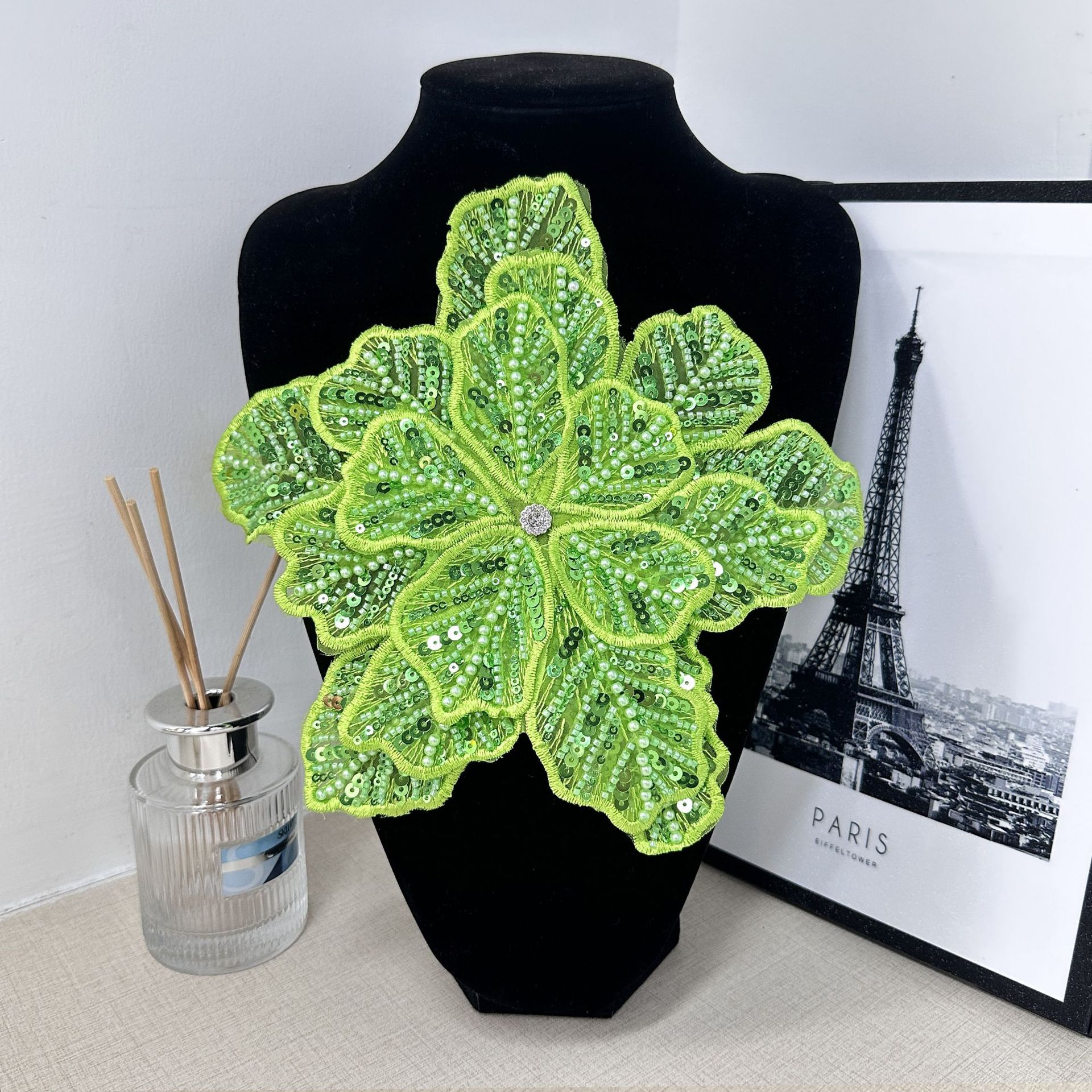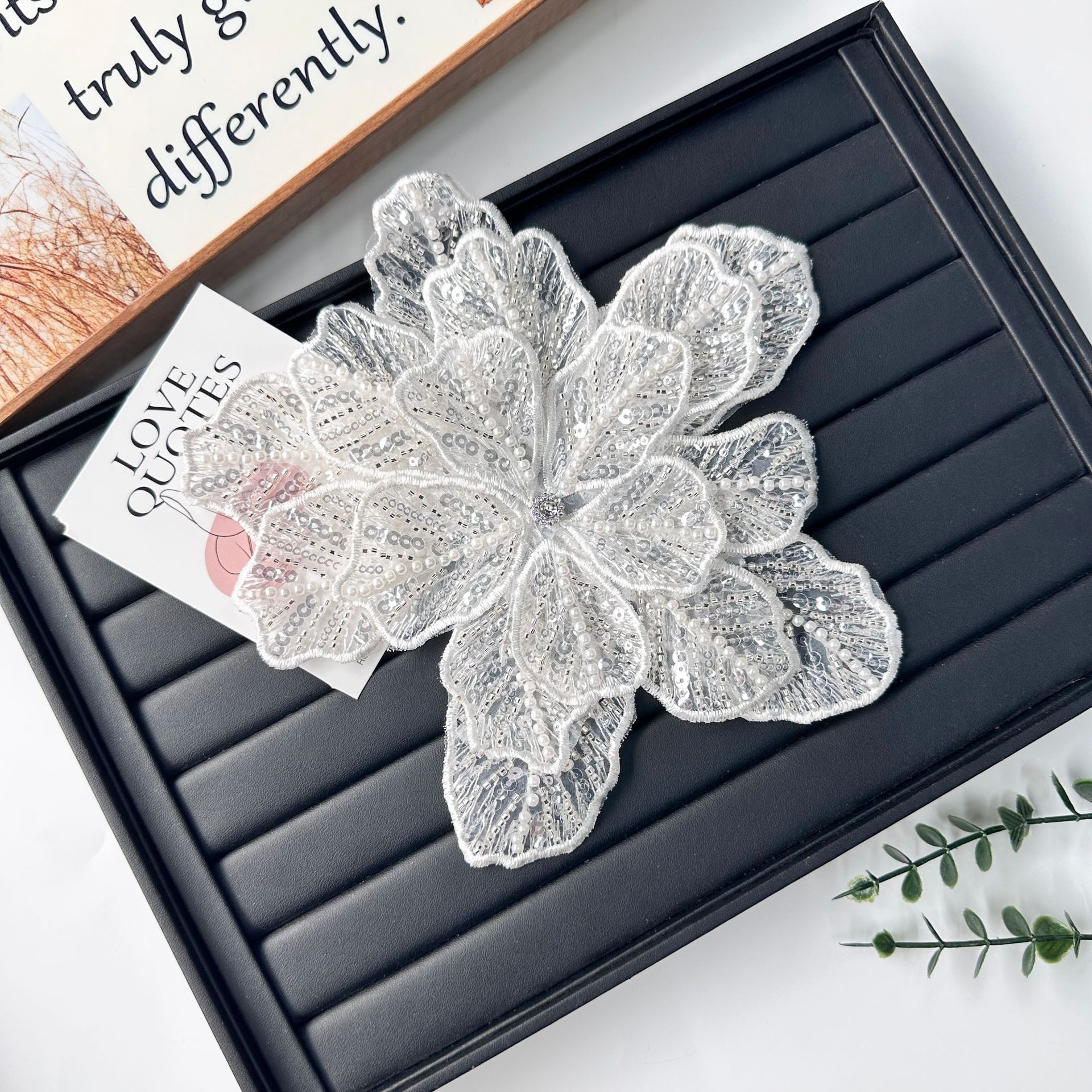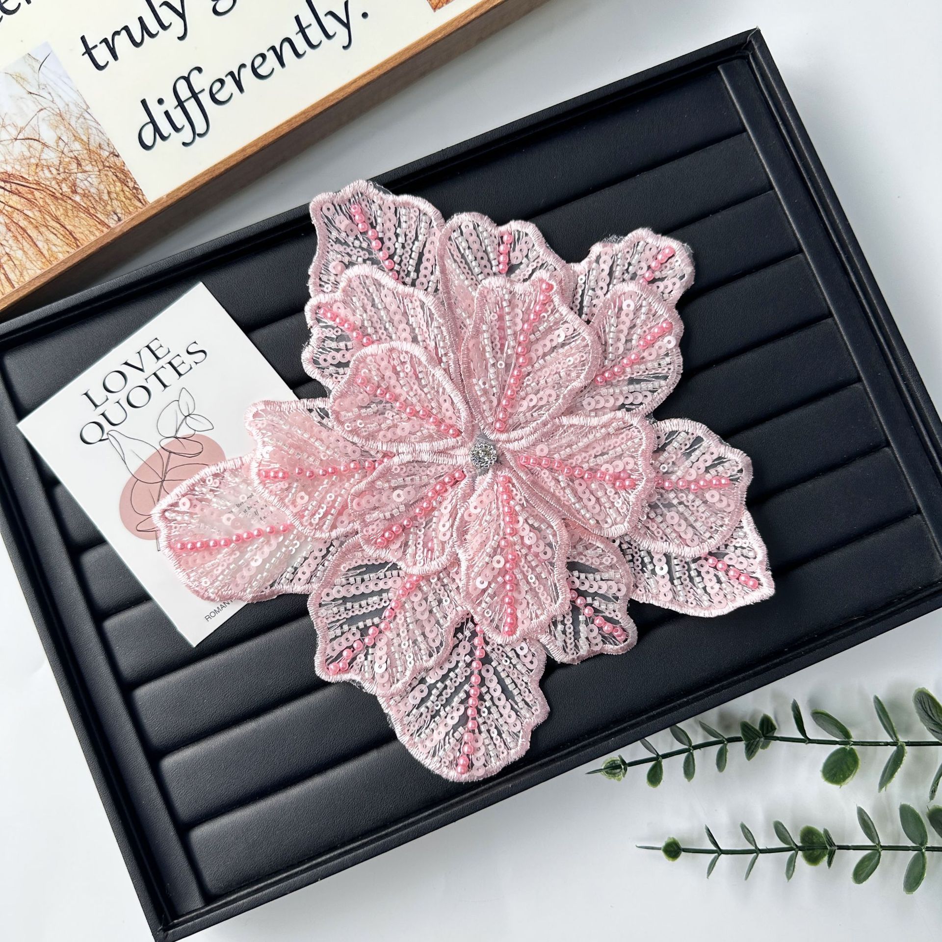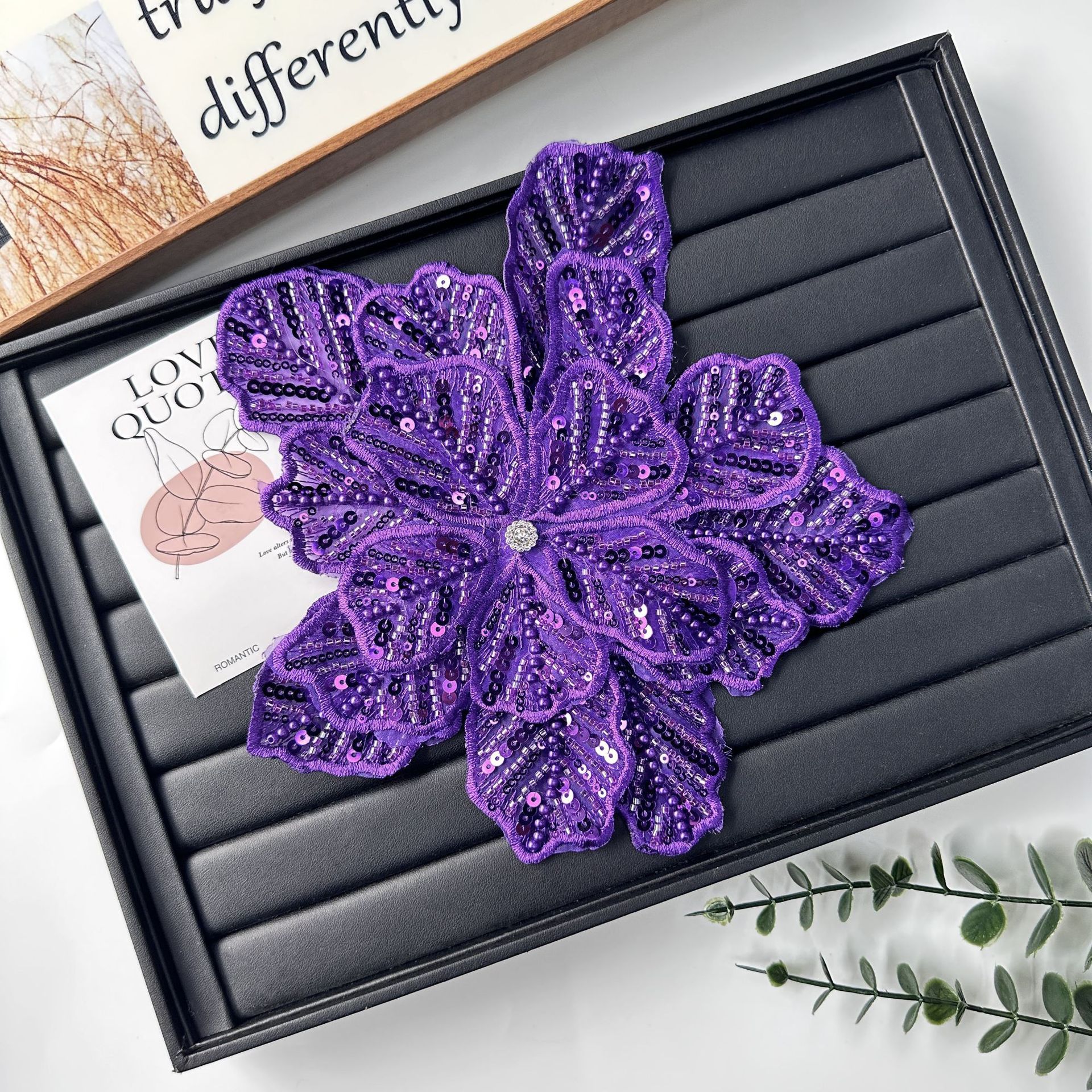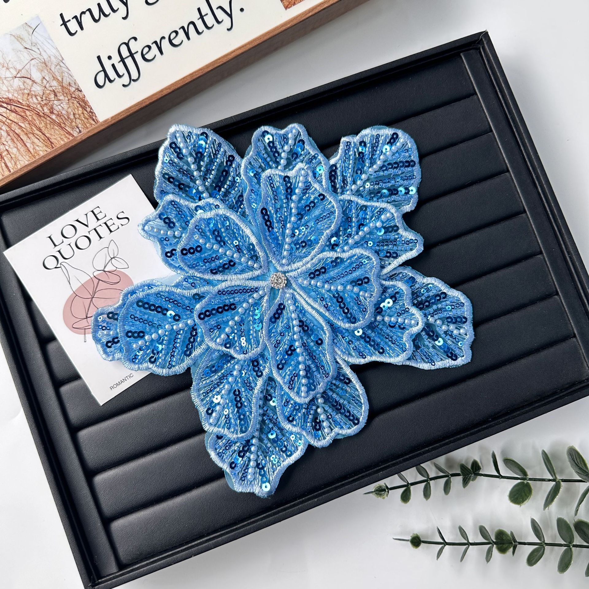 国境を越えた立体花珠花珠刺繍尖葉胸花布貼り立体明るい刺繍帽子パッチ対外貿易服装装飾
