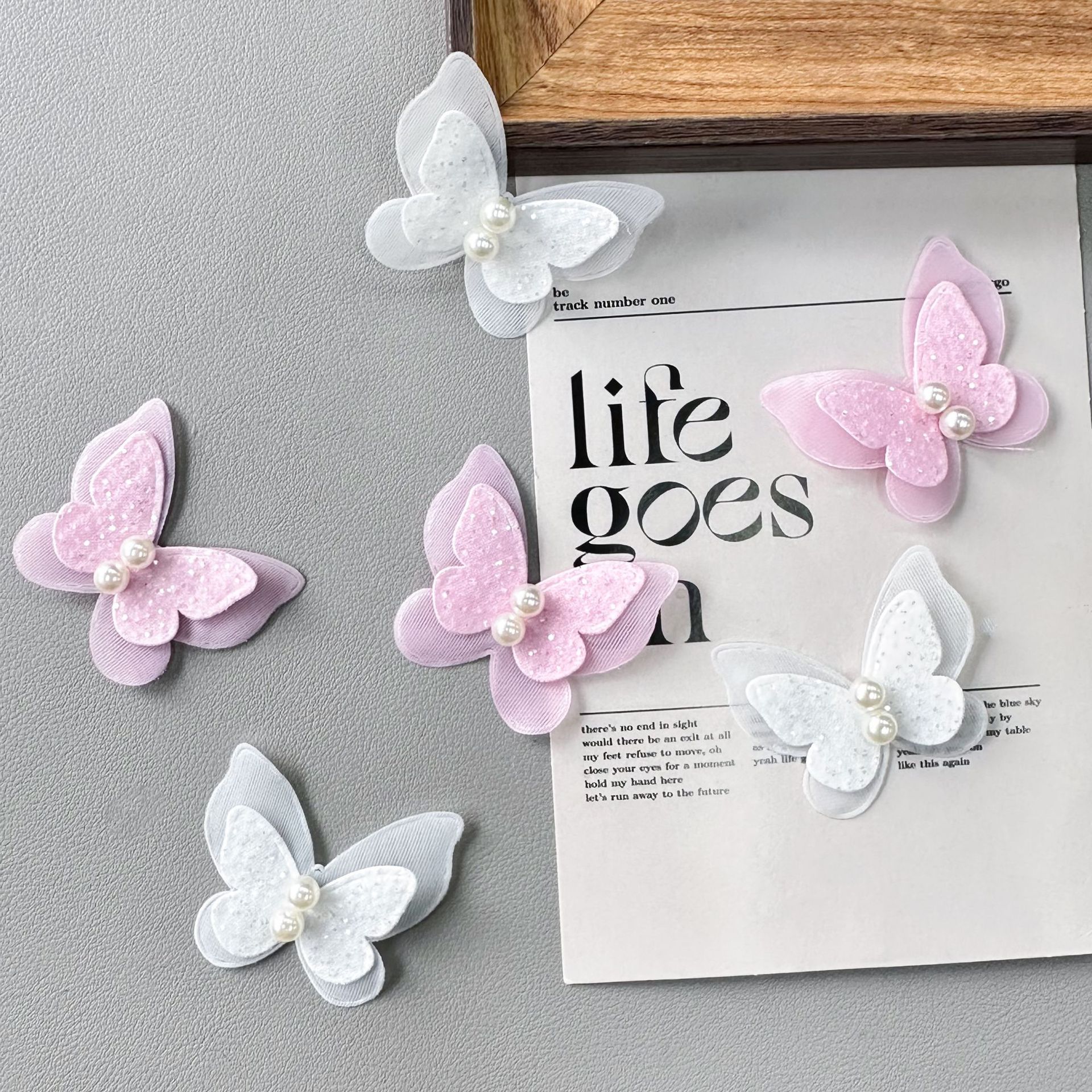 二層欧根紗真珠ミニ蝶デカール装飾花服装童装ワンピース靴帽バッグ補助材料