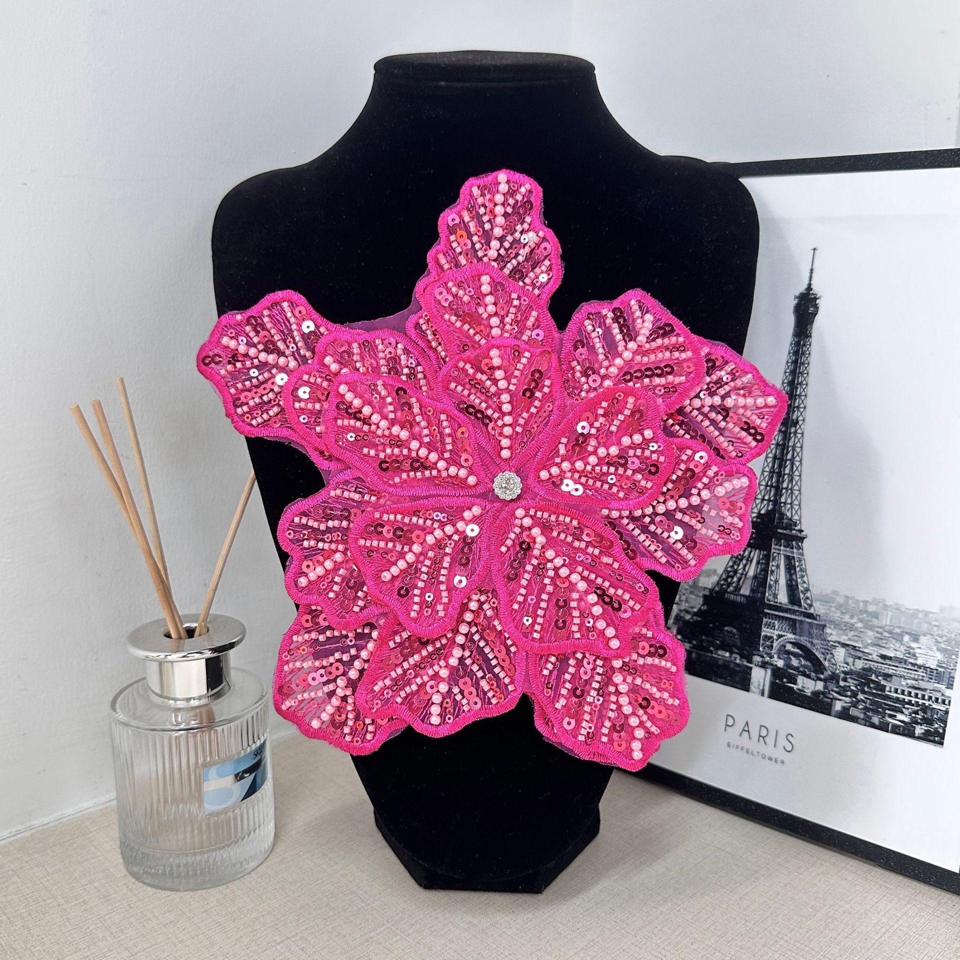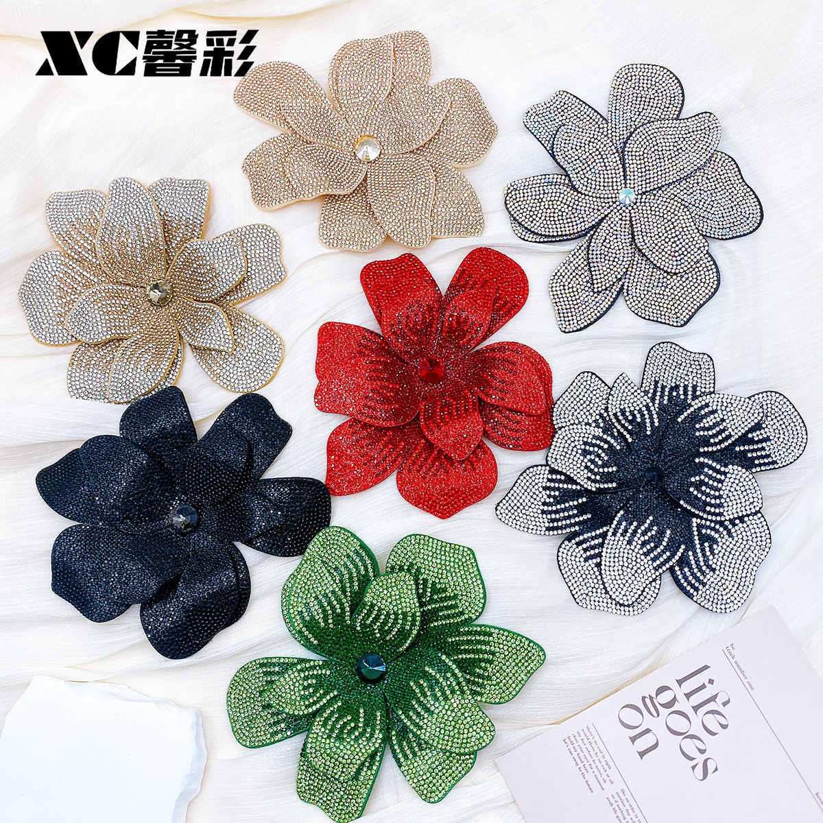 新款花朵水钻配饰时尚超大带钻花朵服装辅料diy手工配饰