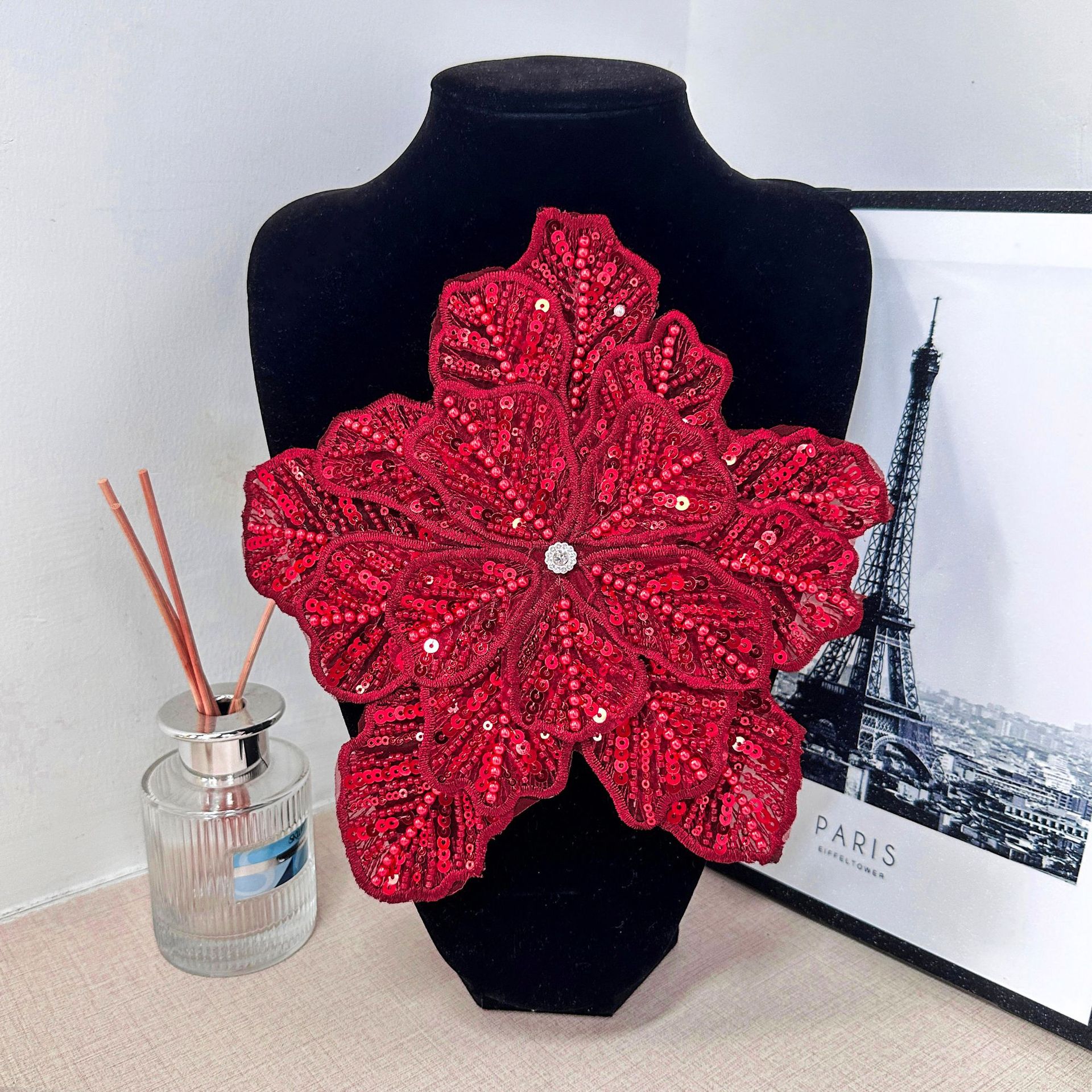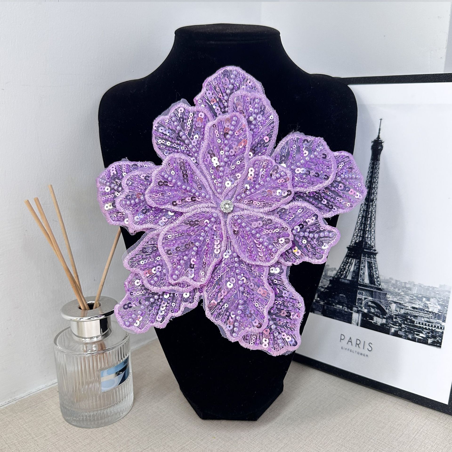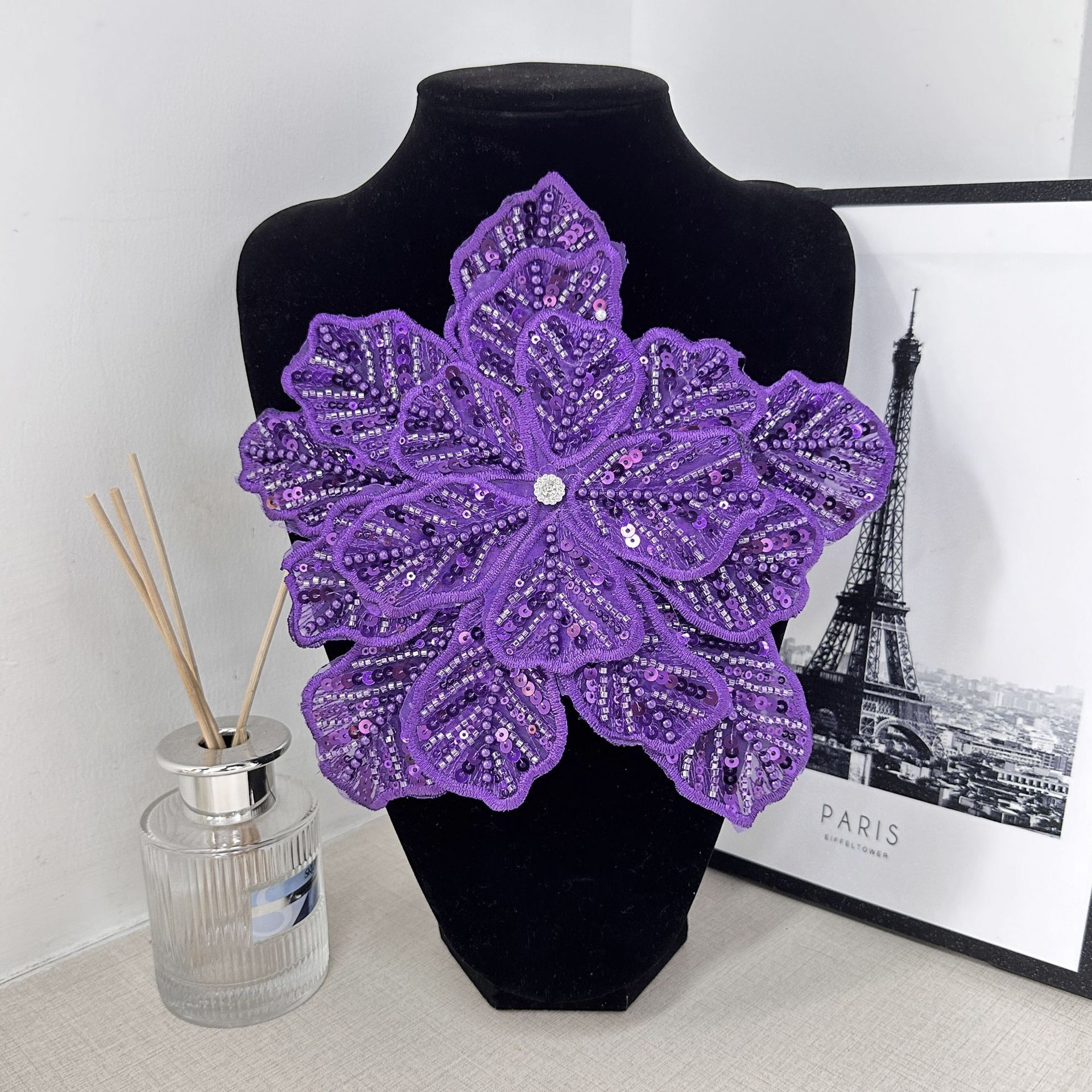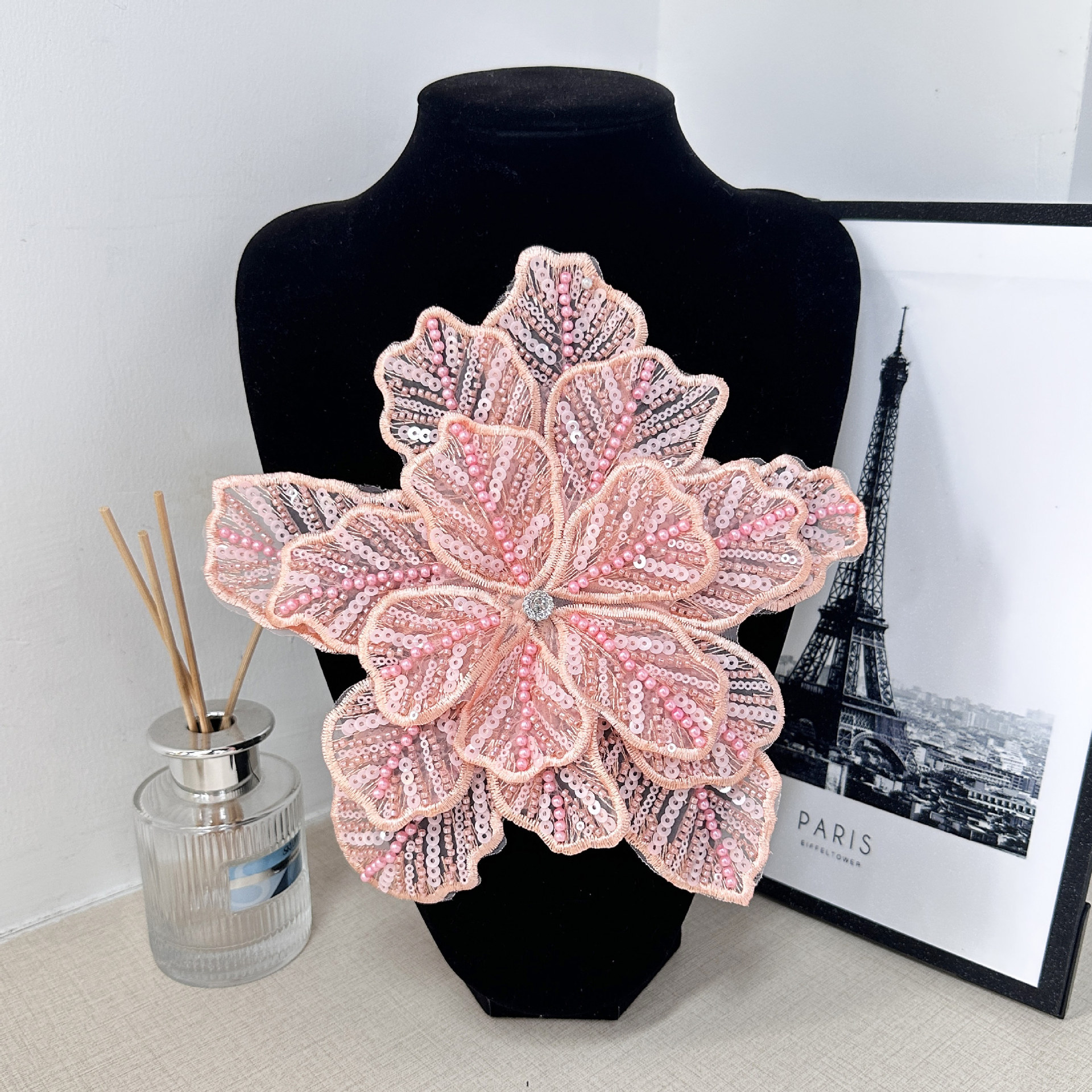 重工の立体多層のスパンコール真珠のビーズの花のショーの形の頭飾りの服のドレスDIY装飾の補助材料