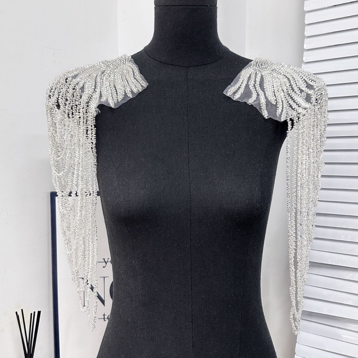 タッセルチェーンスパンコールショルダートリムウェディングドレスパフォーマンスウェアファッションアクセサリーゴールド刺繍布ステッカー