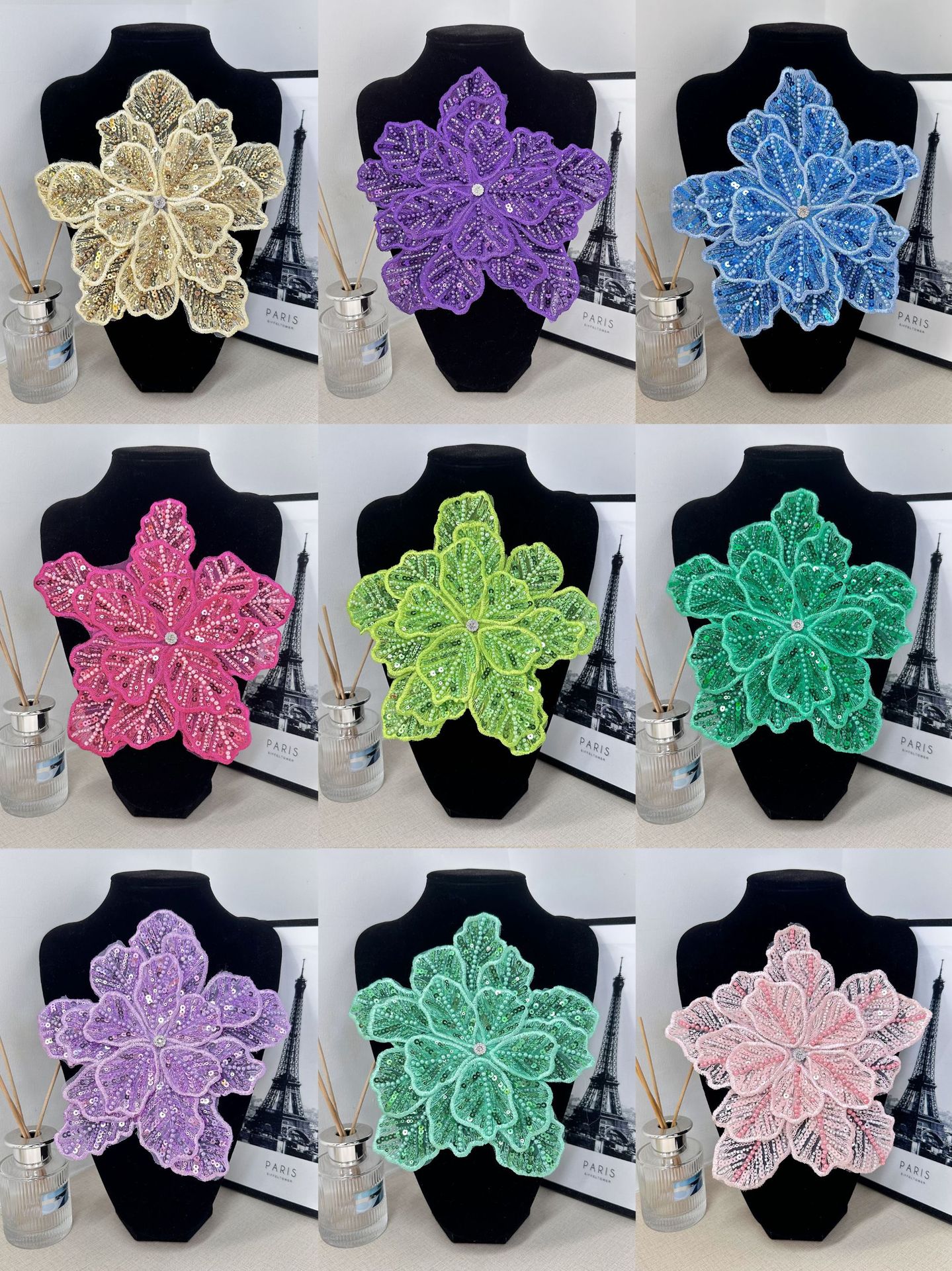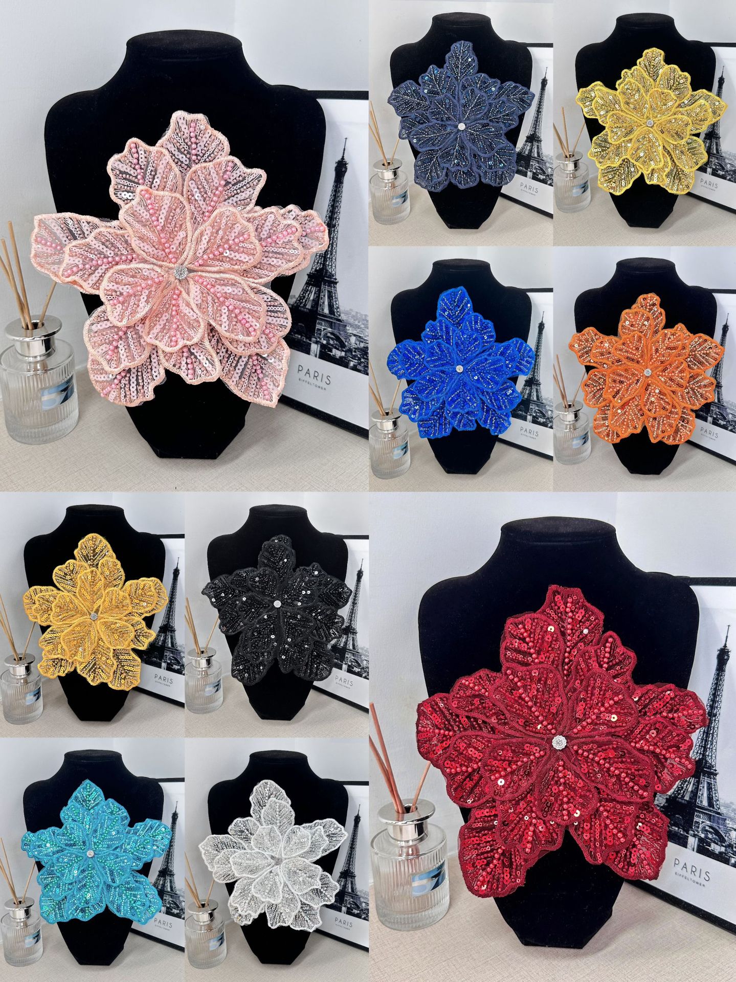 新しい立体ビーズスパンコールマルチカラーフラワーブートニアドレス頭飾りバッグ装飾衣類手作り花在庫あり