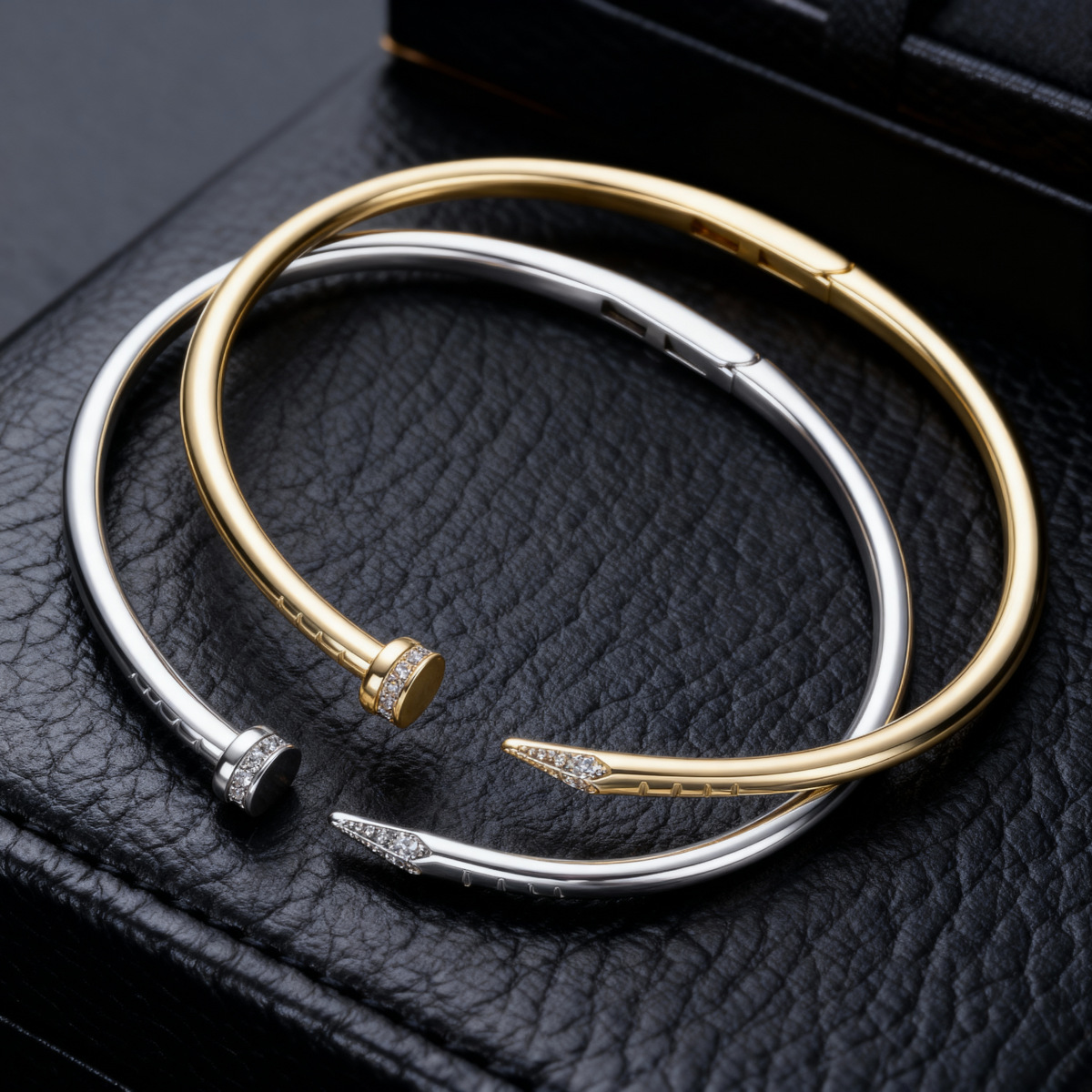 厂家包邮欧美时尚爆款铜镀14K真金手饰百搭个性卡家高版钉子手镯