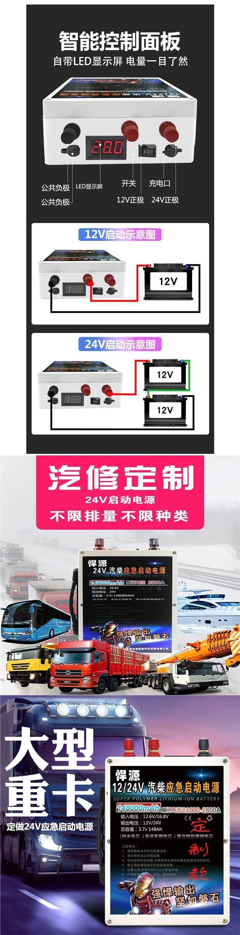 精鋭源自動車緊急起動電源12/24V柴ガソリントラックの大電力強啓火神器は電気宝に乗る