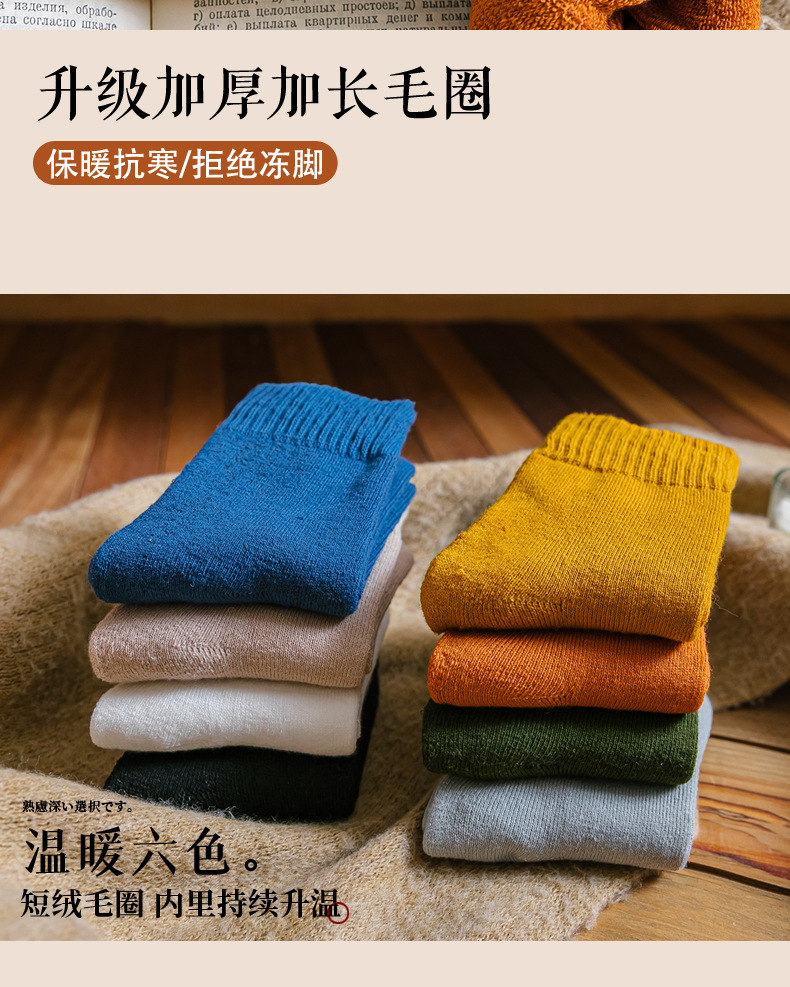 袜子男秋冬加厚保暖中筒袜纯色加绒女士毛圈袜毛巾底冬季男袜批发