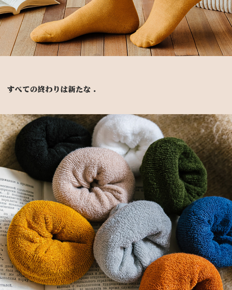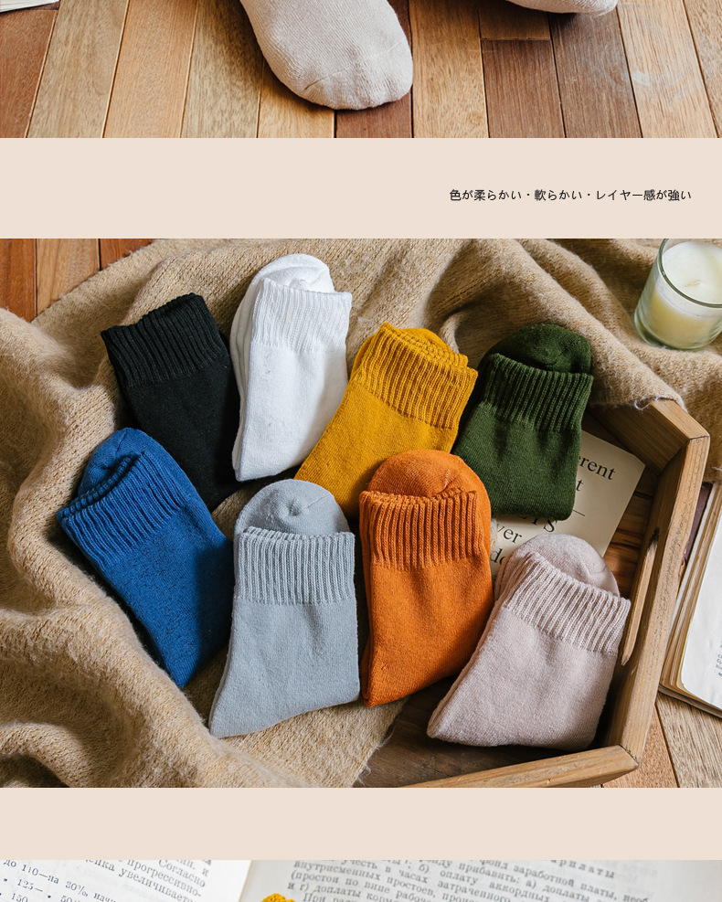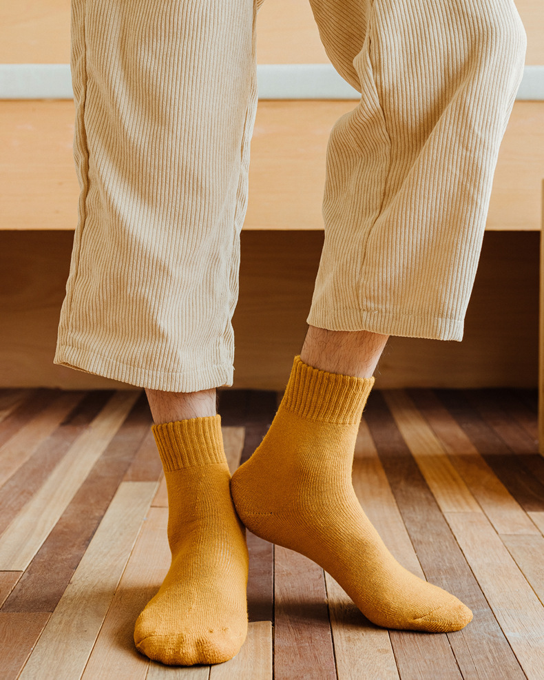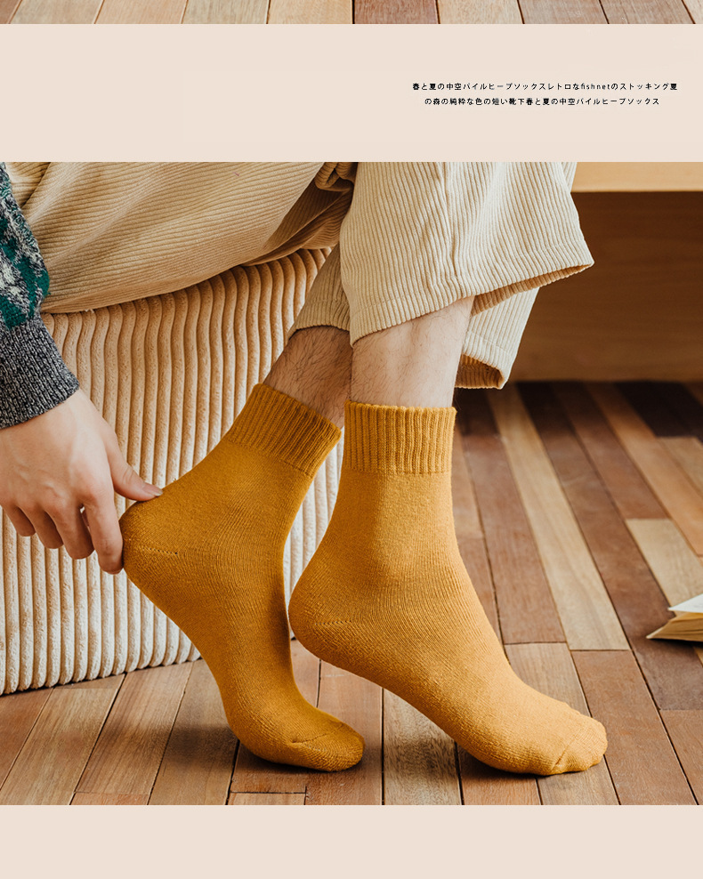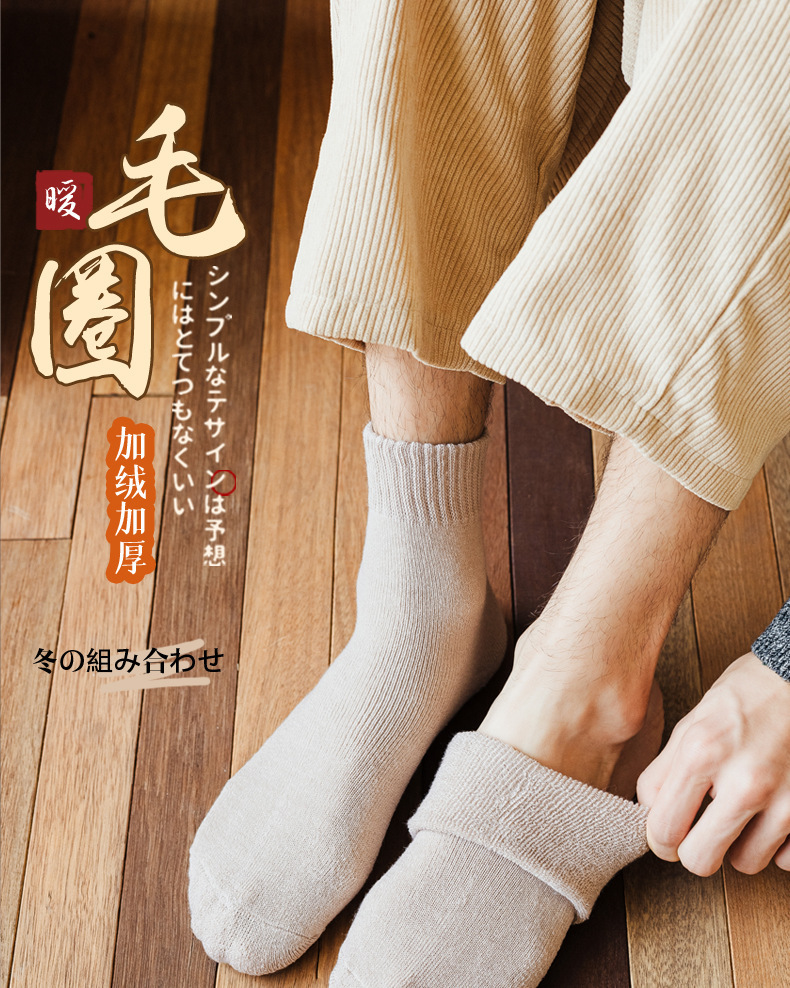ウールソックス男女の冬にベルベットをつけて保温靴下の純色を厚くして、秋冬のストッキングのファッションタオル靴下に合わせる