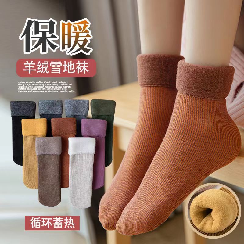 秋冬保温靴下女性ベルベット超厚手雪靴下保温耐寒床靴下月子靴下中筒靴下男女