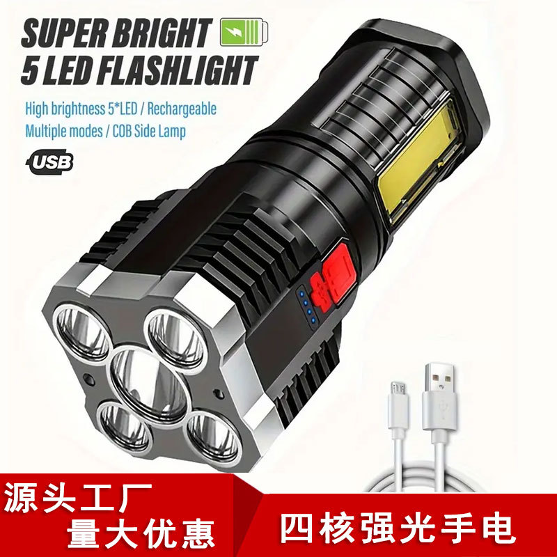四核強光懐中電灯強光携帯充電十万ルーメン屋外家庭用多機能led遠射五頭
