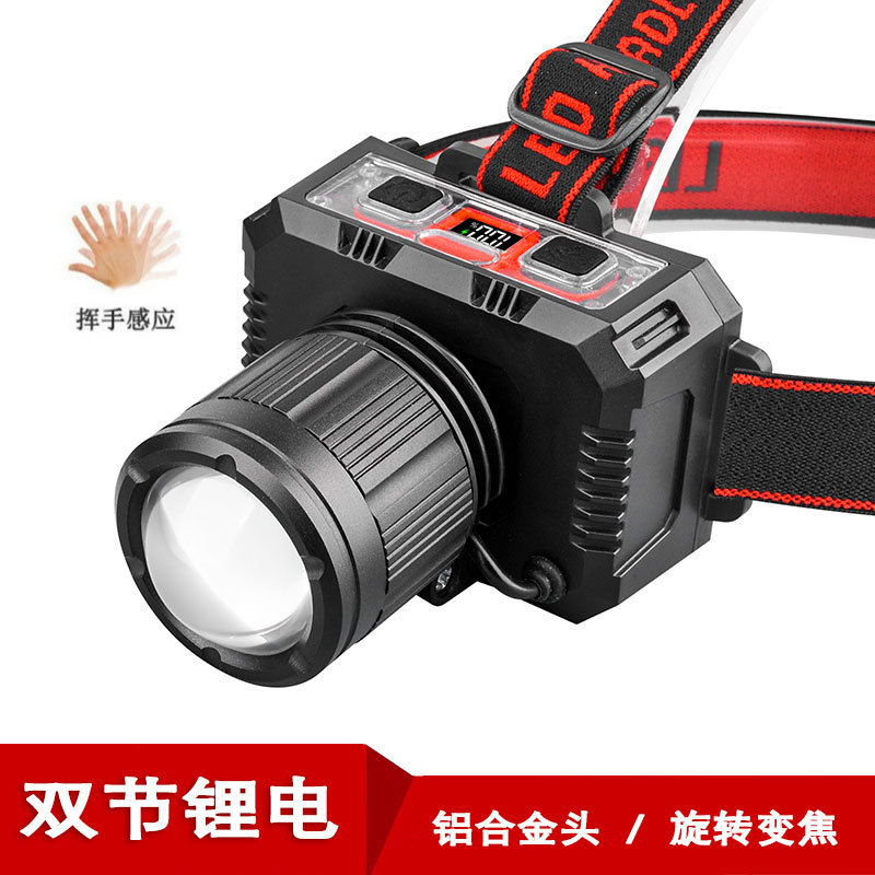 ヘッドマウント屋外強力な光ヘッドランプ回転ズーム手を振る誘導デュアルリチウム電池屋外夜釣りランプ作業用ランプ