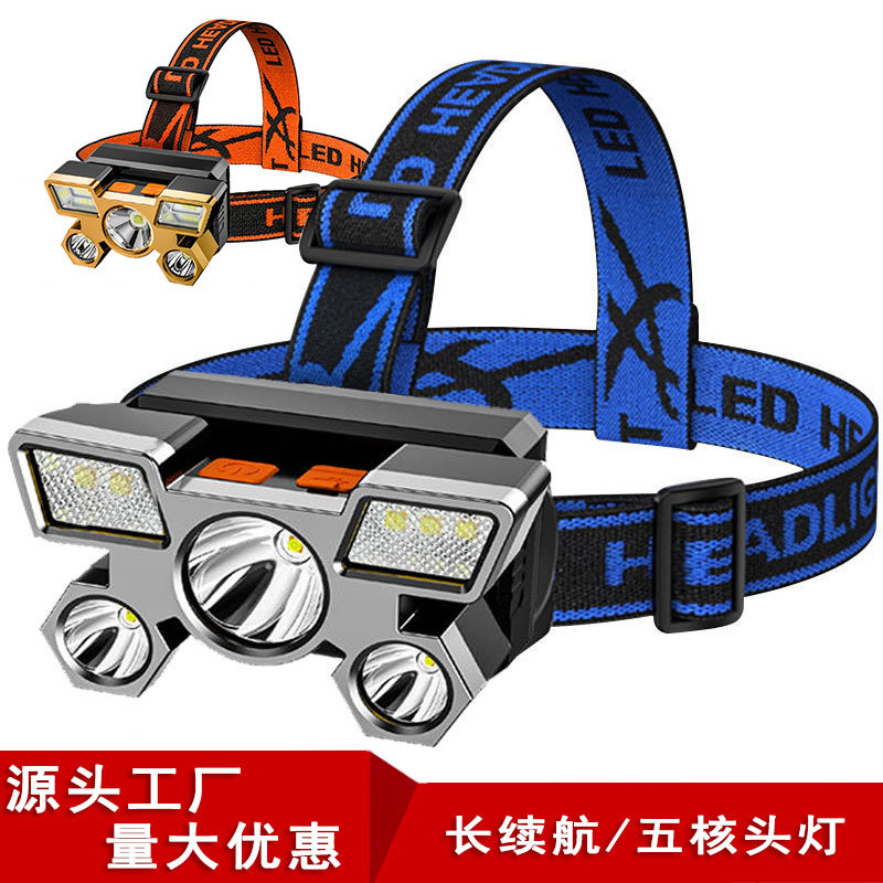 国境を越えた新型強光ヘッドライトled五頭飛行機ランプusb充電ヘッドセット小懐中電灯屋外鉱山ランプヘッドライト