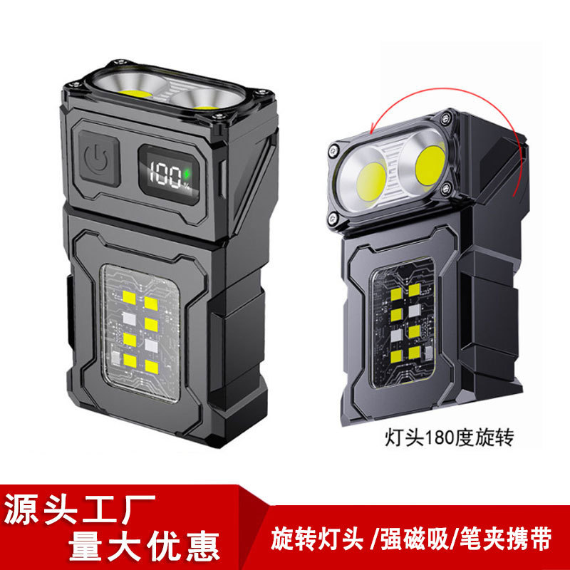 跨境户外强光工作灯露营灯钥匙扣灯便携手电筒充电磁吸汽车维修灯