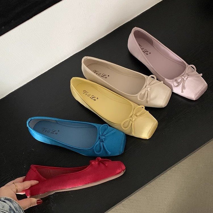 靴の乳の靴の平の風の方の頭の浅い口のバレエの2025年の甘い美人の1足の靴の蝶結びの新型