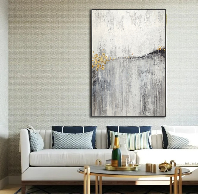 純粋な手描きの油絵ホテルのソフトデコレーション吊り絵画金箔モデルルームツーリング手描きの油絵ハイエンドヴィラ装飾吊り絵画