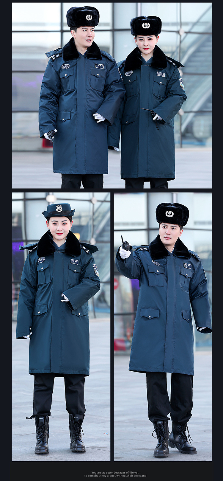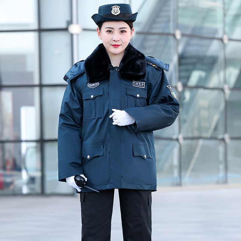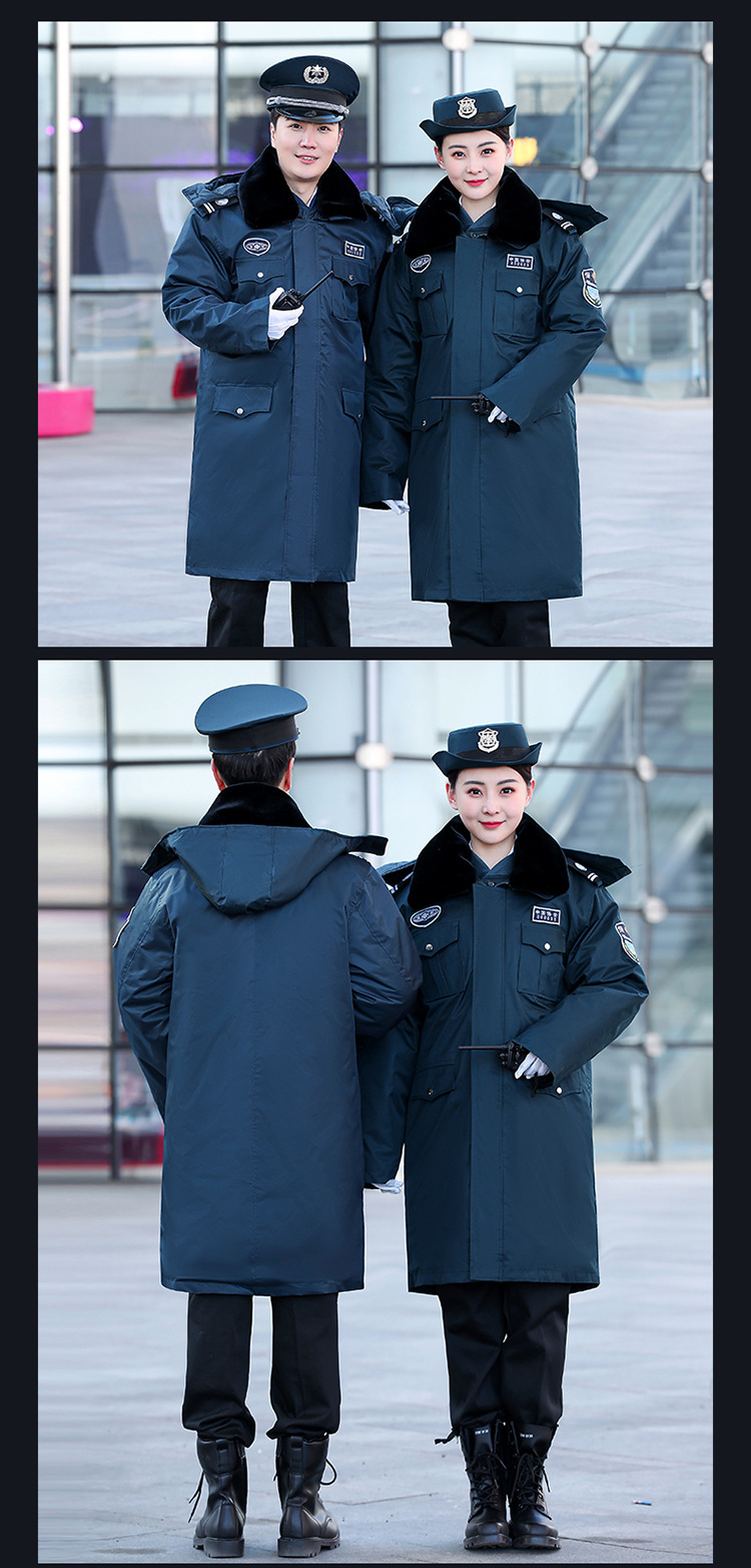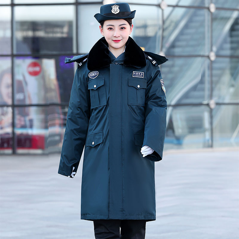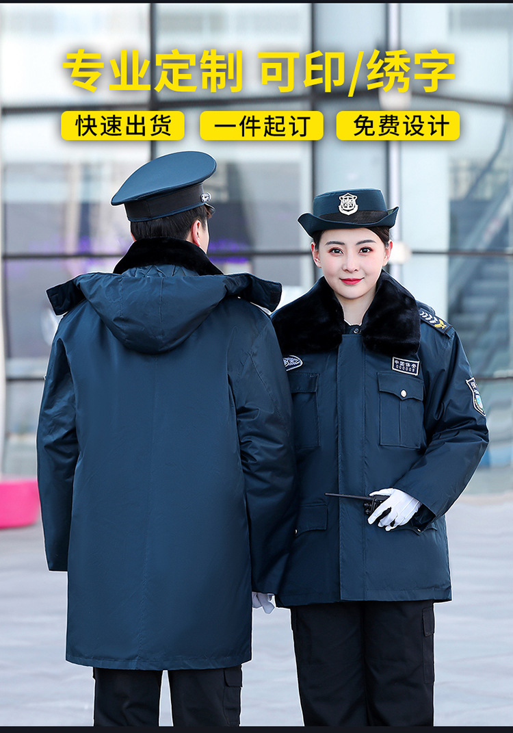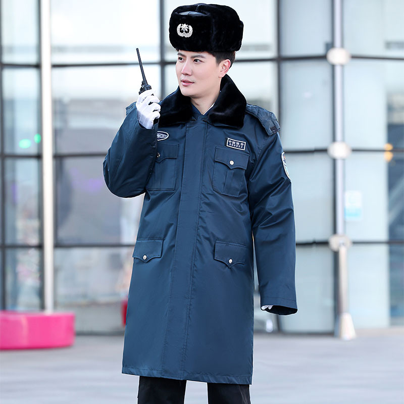 2011墨緑保安コート冬に防寒服と綿服を厚くして、多機能綿服の作業服を長くします。