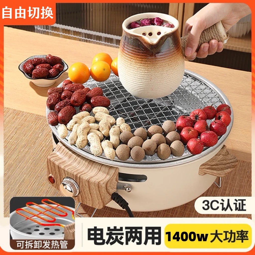 電気炭両用暖炉、家庭用バーベキューグリル、暖房、ポータブル無煙串焼き、お茶を沸かすための炉