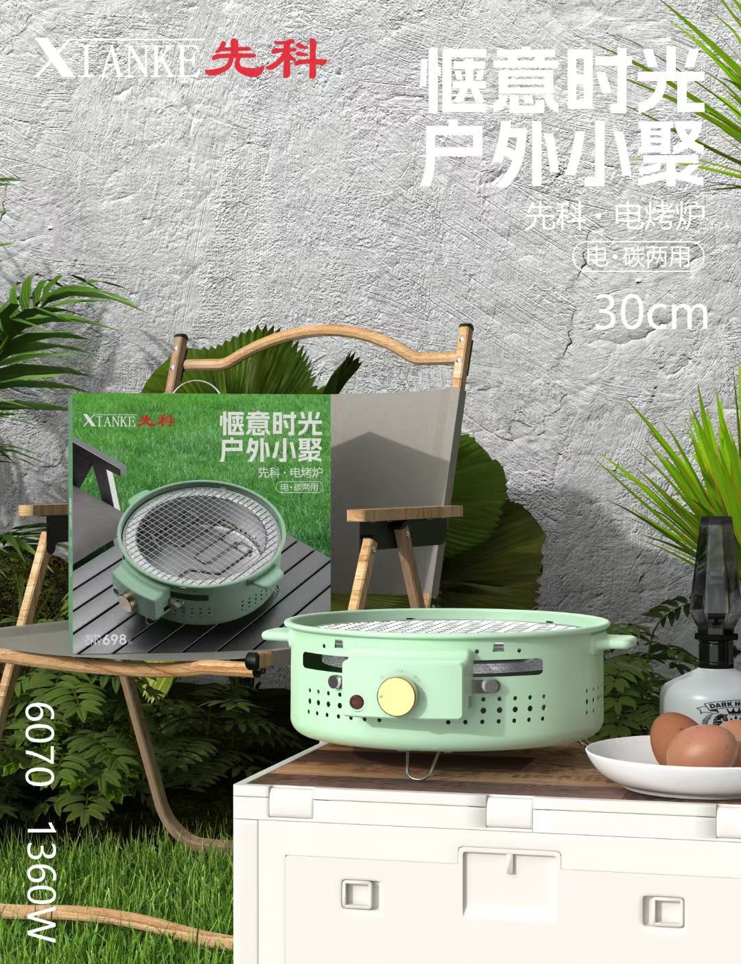 先科电碳两用型围炉多功能烧烤炉圆形家用简约煮茶便捷式烧烤围炉