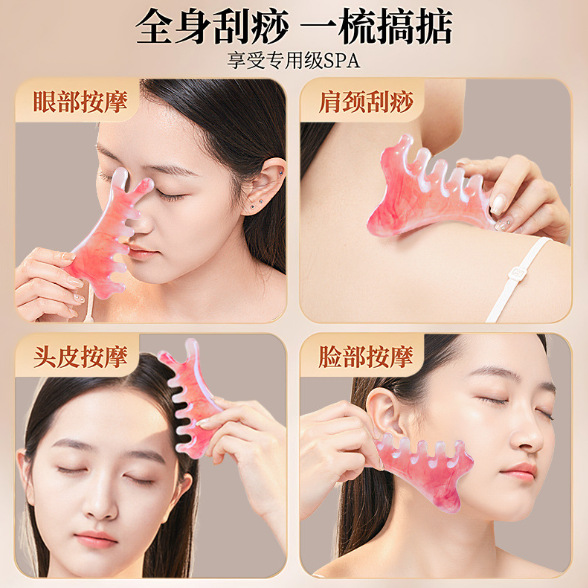 四合一按摩梳子树脂多功能头皮按摩头部头疗疏通经络神器脸部眼部