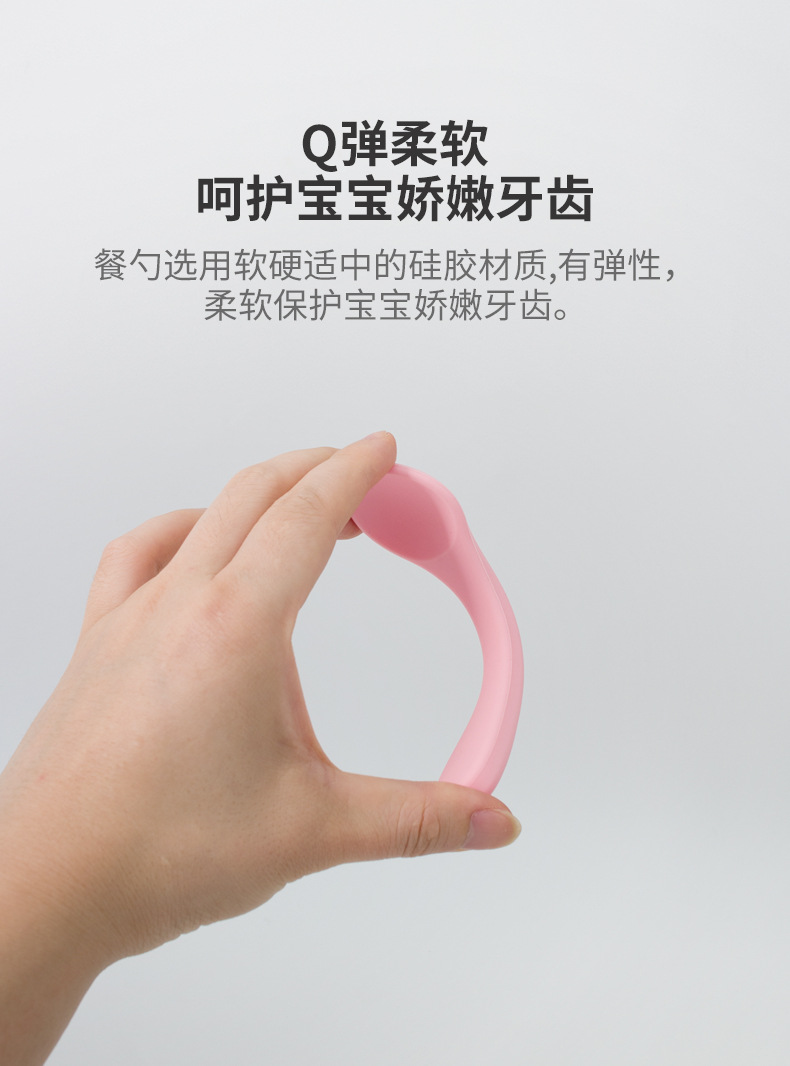 食品シリカゲルのスプーンの小さい曲がったスプーンの柔らかいゴムのスプーンの赤ちゃんは食べ物のスプーンを学んで栄養を与えます。