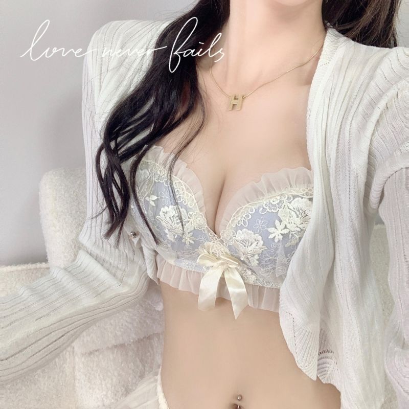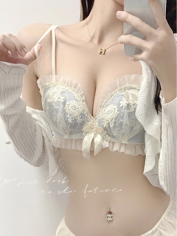 法式内衣女小胸聚拢夏天薄款少女bra无钢圈舒适美背三角杯文胸罩