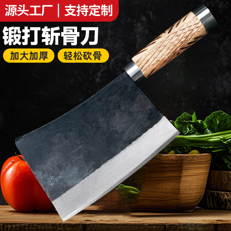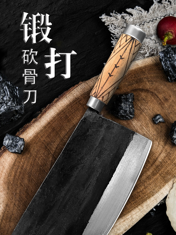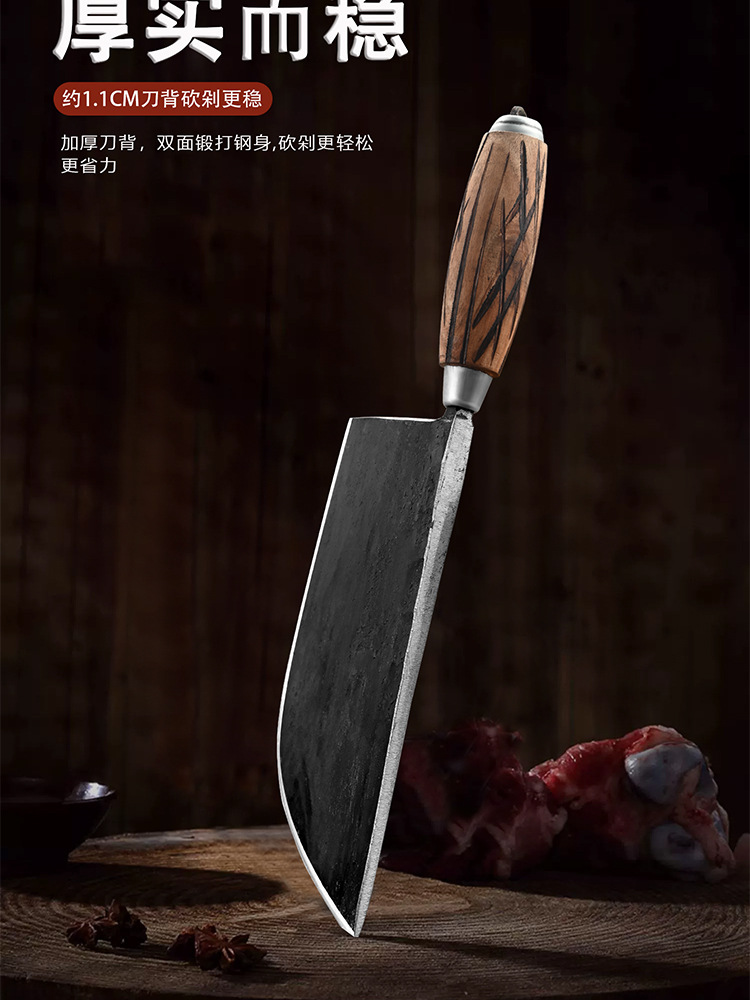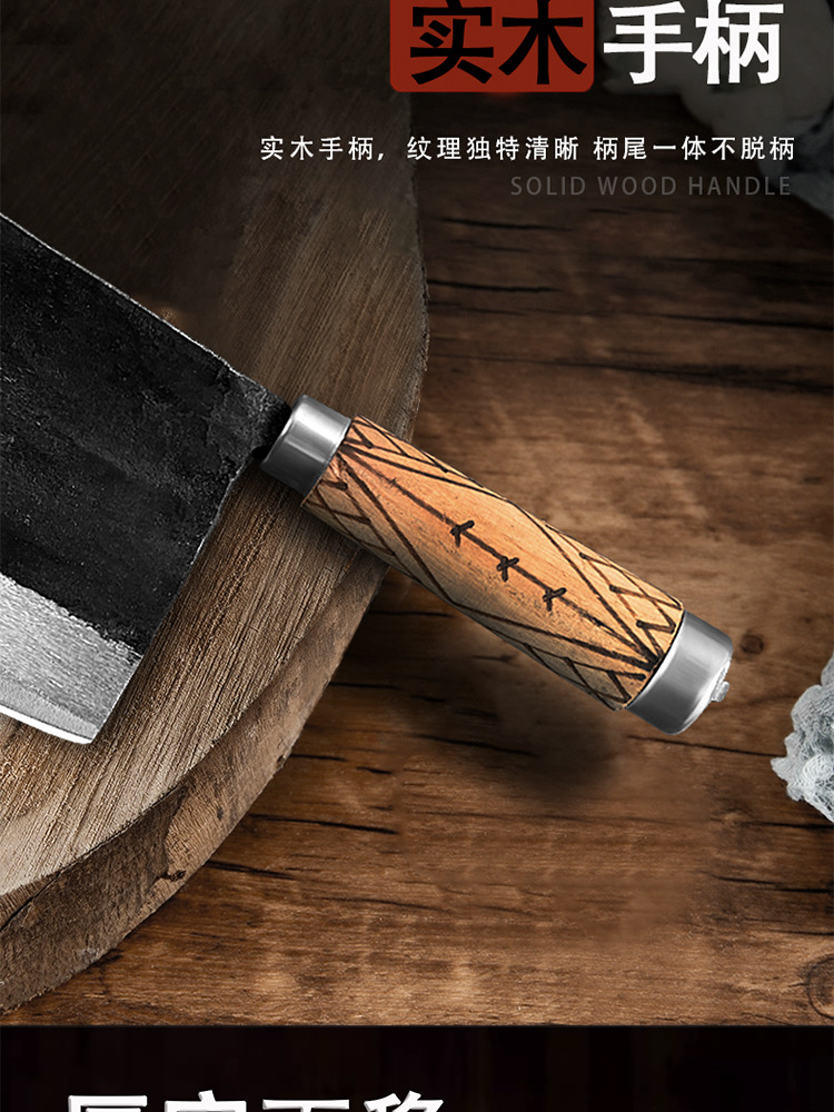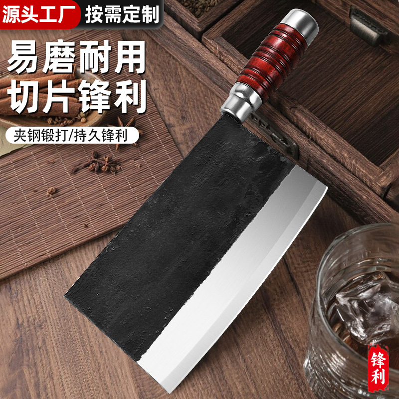 厨师专用菜刀老式锻打夹钢切片刀锋利厨房刀具家用切肉切菜手工刀