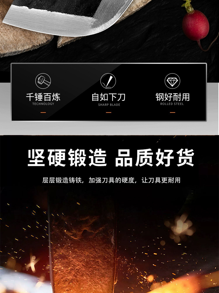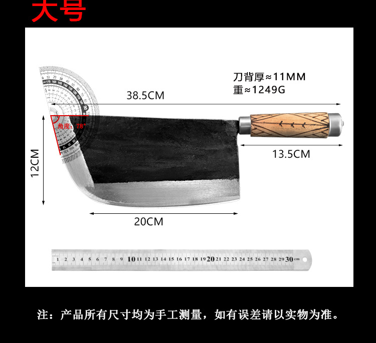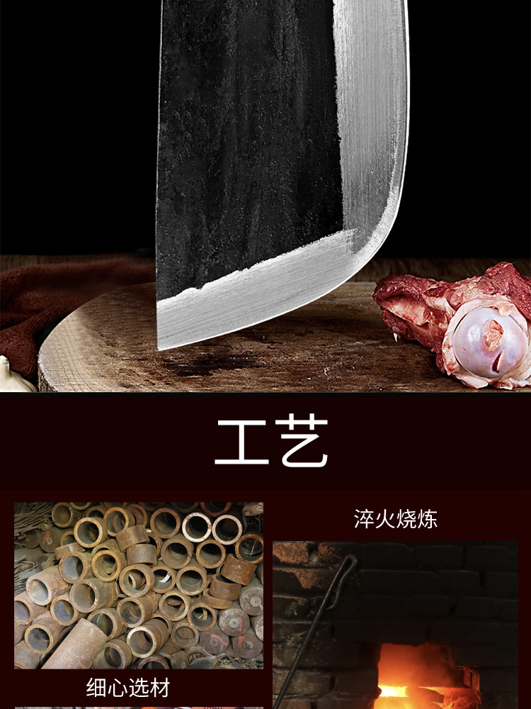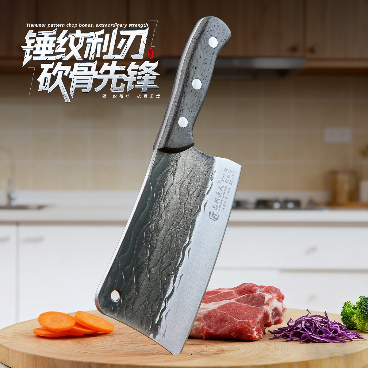 厨师专用菜刀老式锻打夹钢切片刀锋利厨房刀具家用切肉切菜手工刀