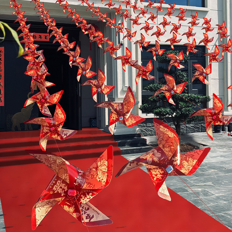 結婚式の風車屋外装飾結婚式屋外庭田舎の結婚式の装飾赤い吊り下げ飾り結婚式の言葉道路風車