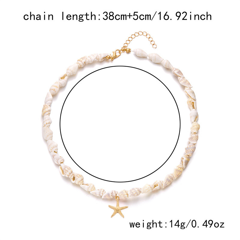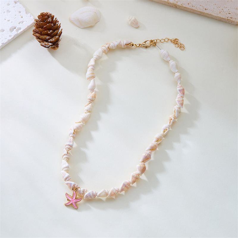 サマービーチジュエリーヒトデシリーズ真珠ヒトデと巻貝のネックレス女性用マルチエレメントビーズクリスタルネックレス