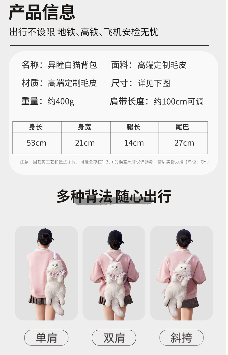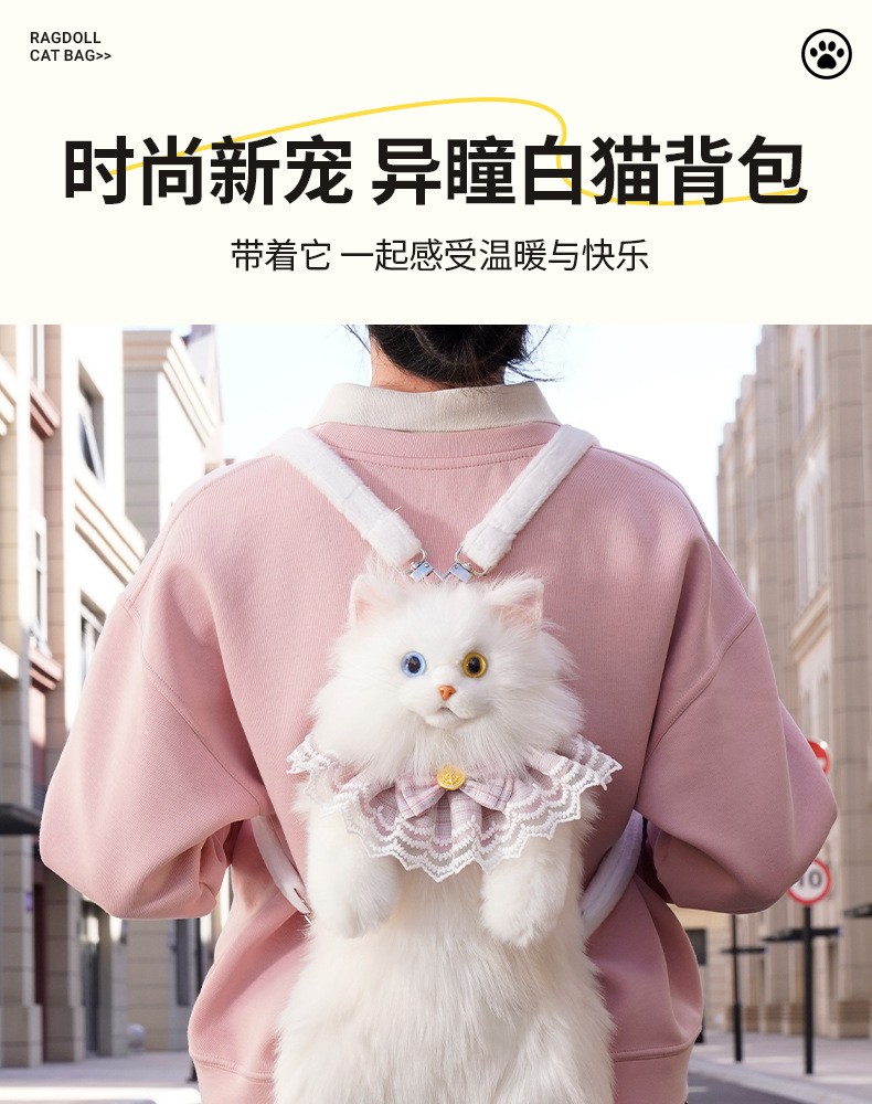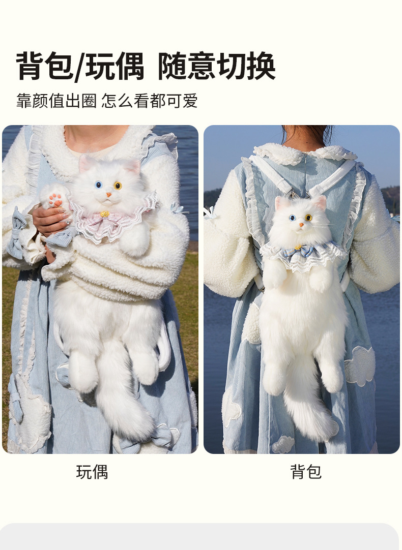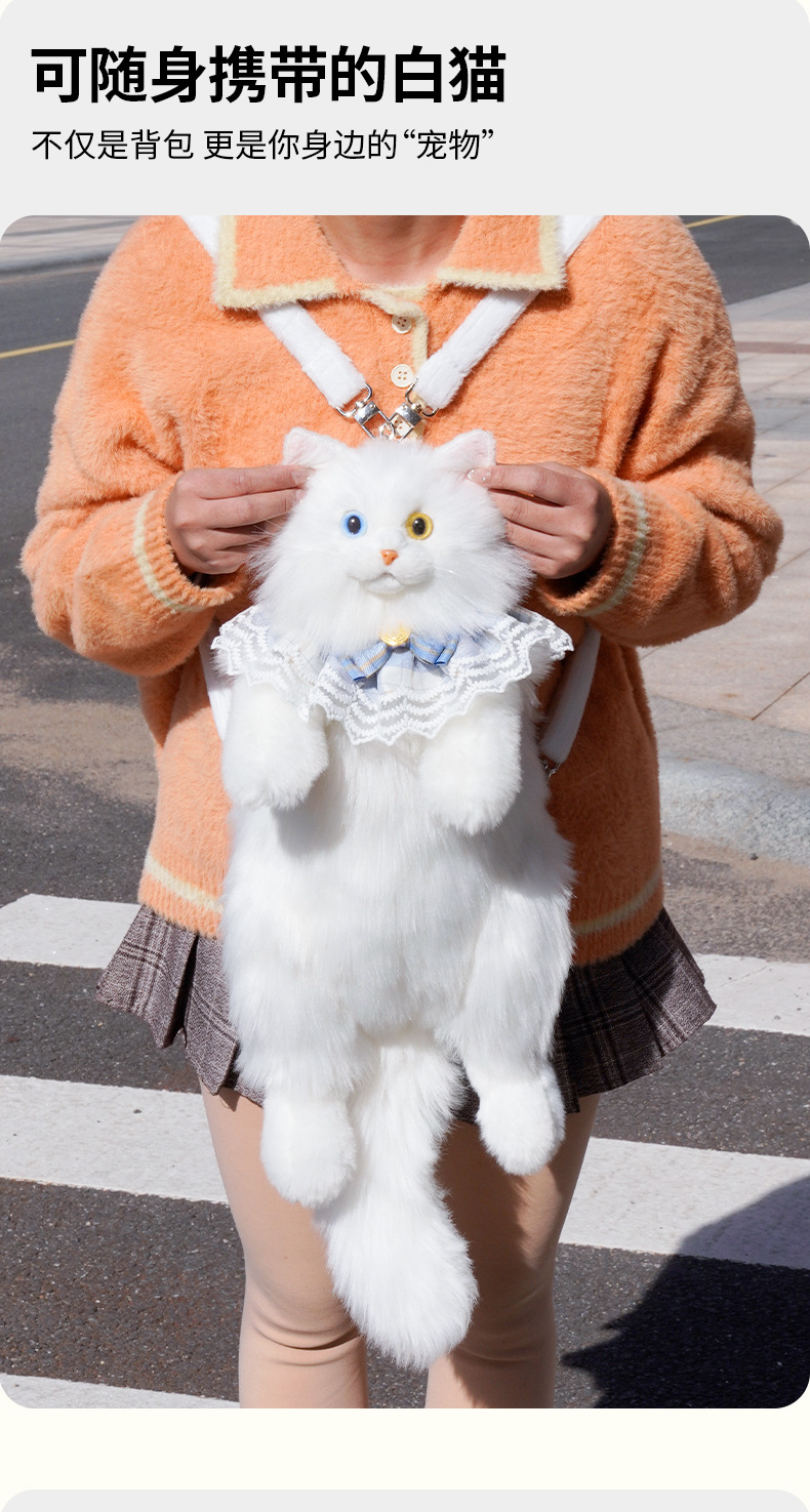 異瞳白猫リュックサックシミュレーションリュックサック人形ぬいぐるみぬいぐるみ誕生日プレゼント卸売りぬいぐるみ猫