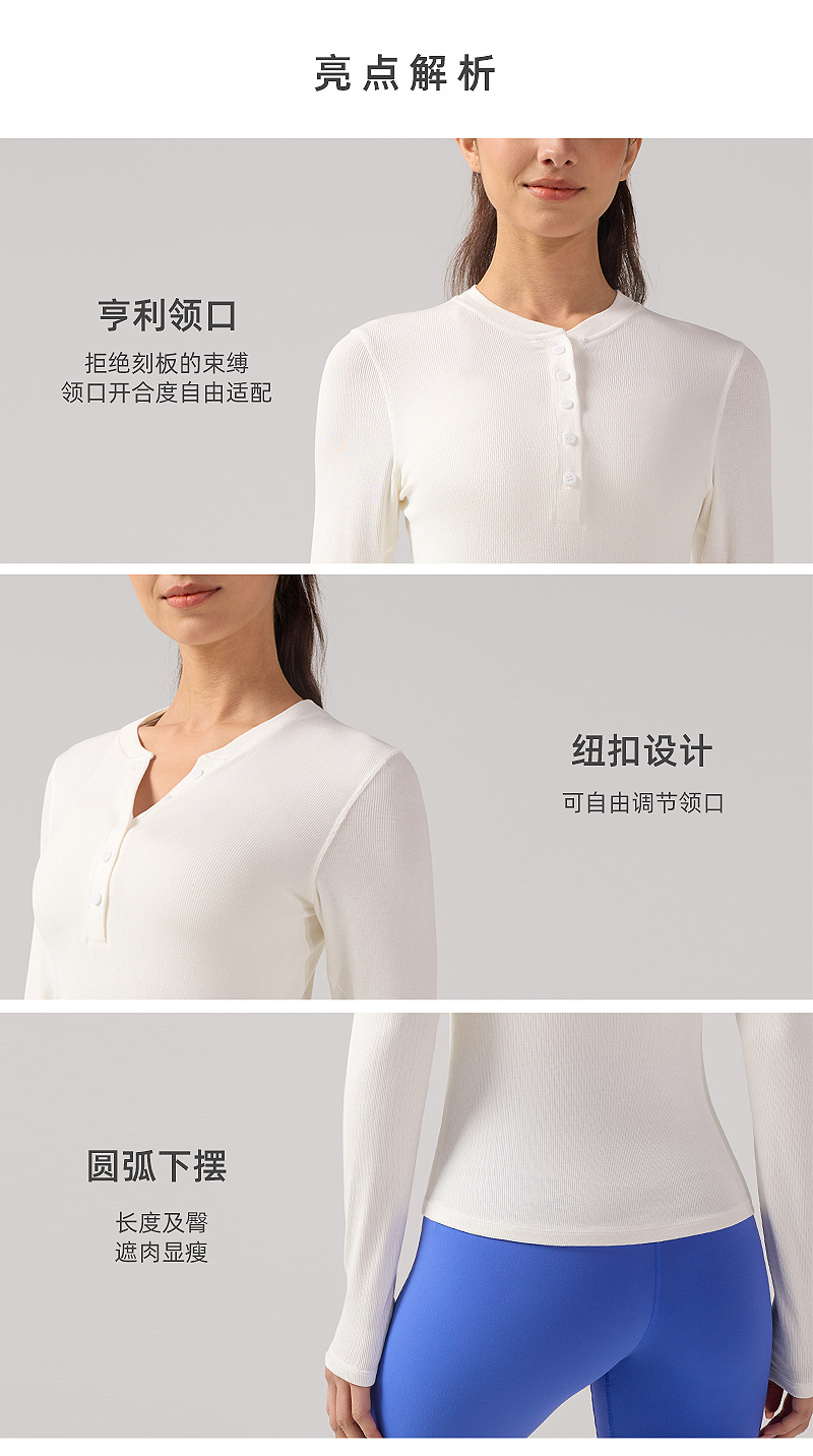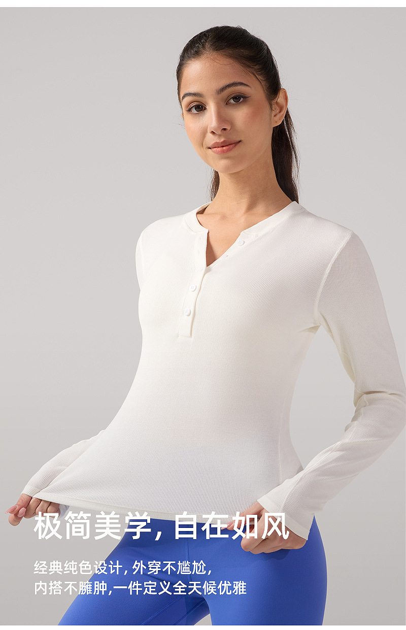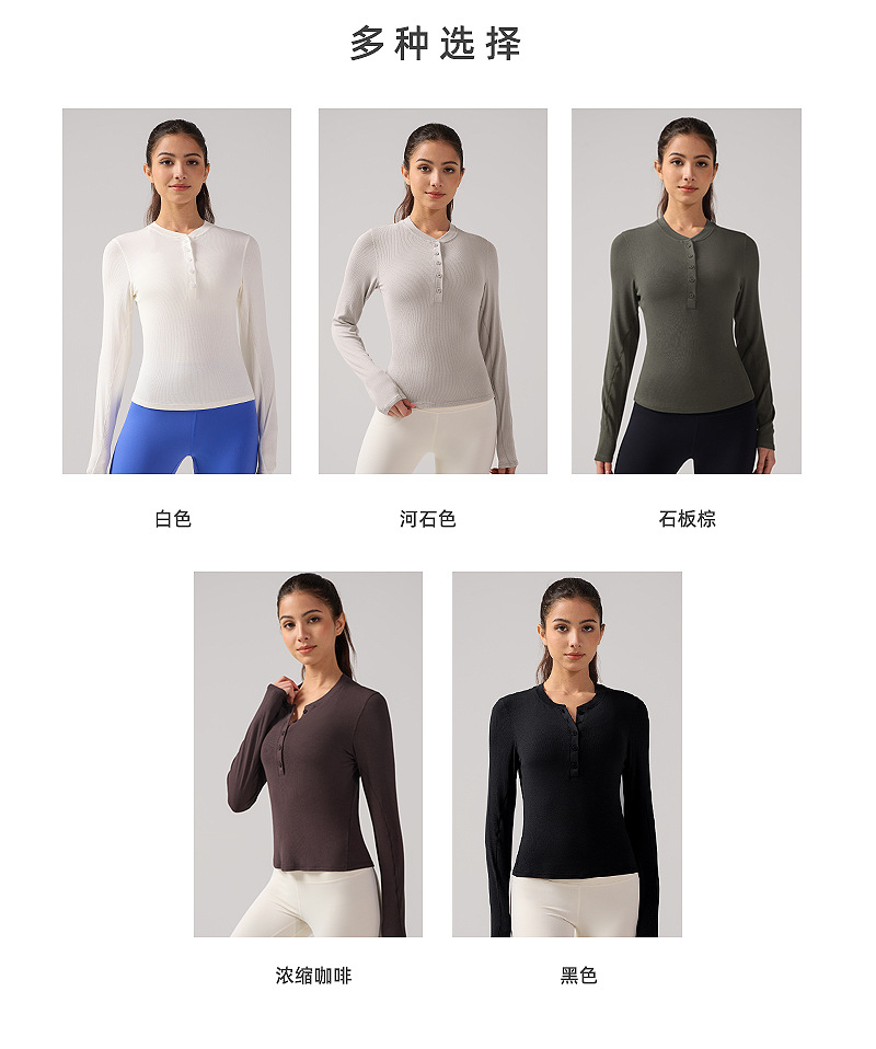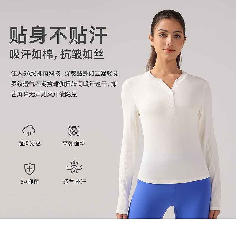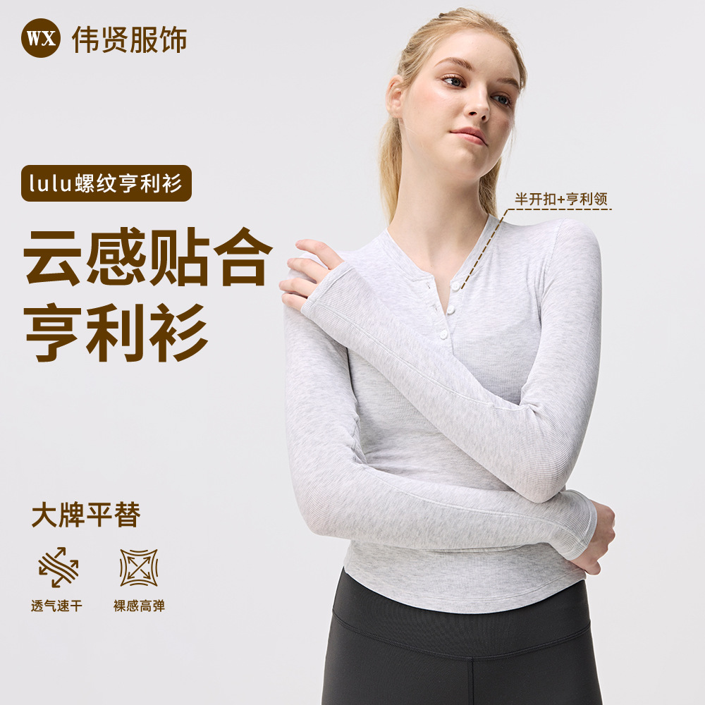 ヘンリー襟ヨガ長袖女性弾力修身吸湿排汗lulu同種運動訓練服