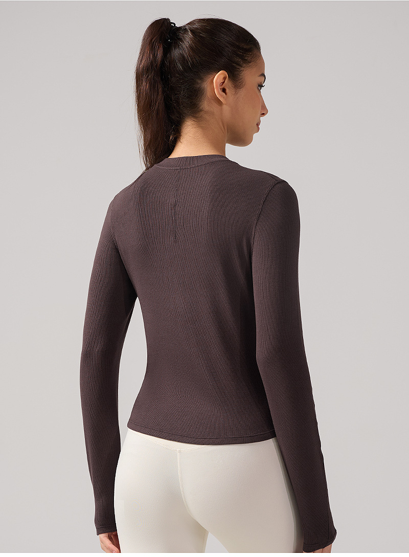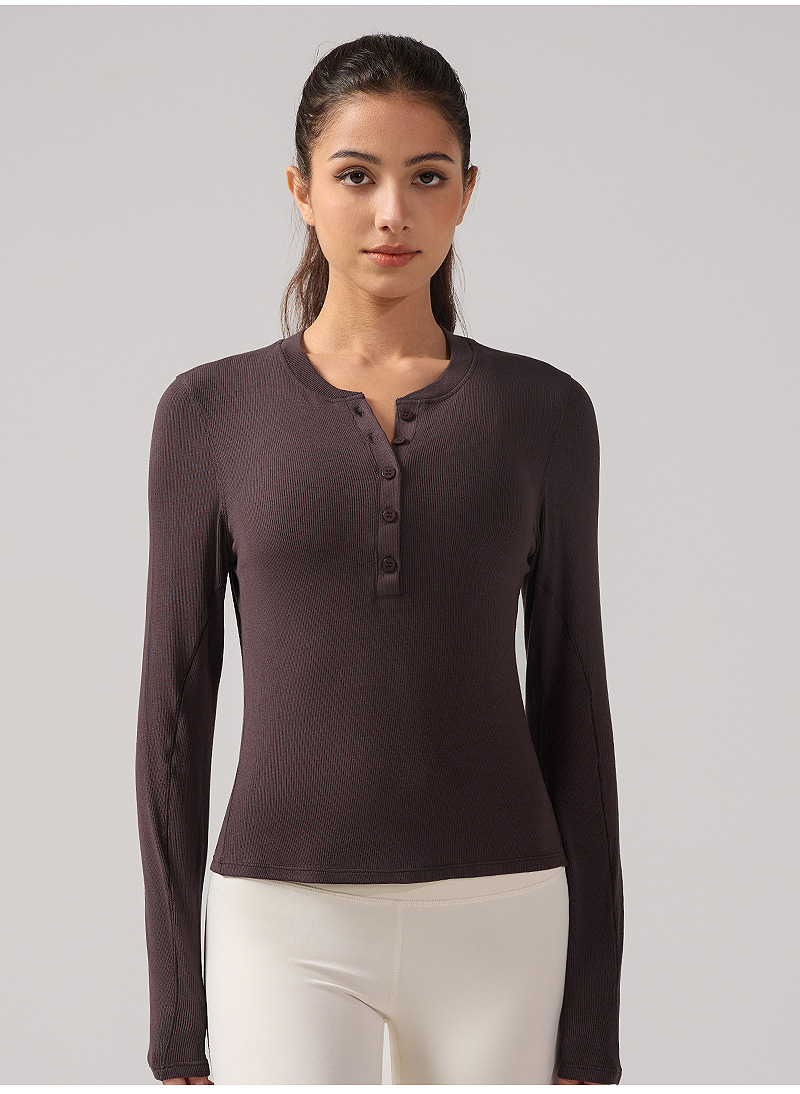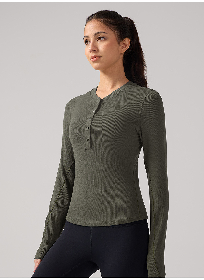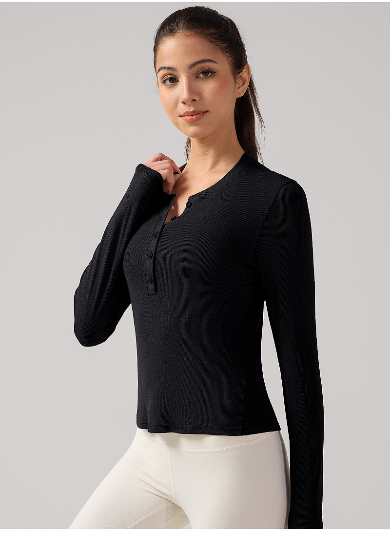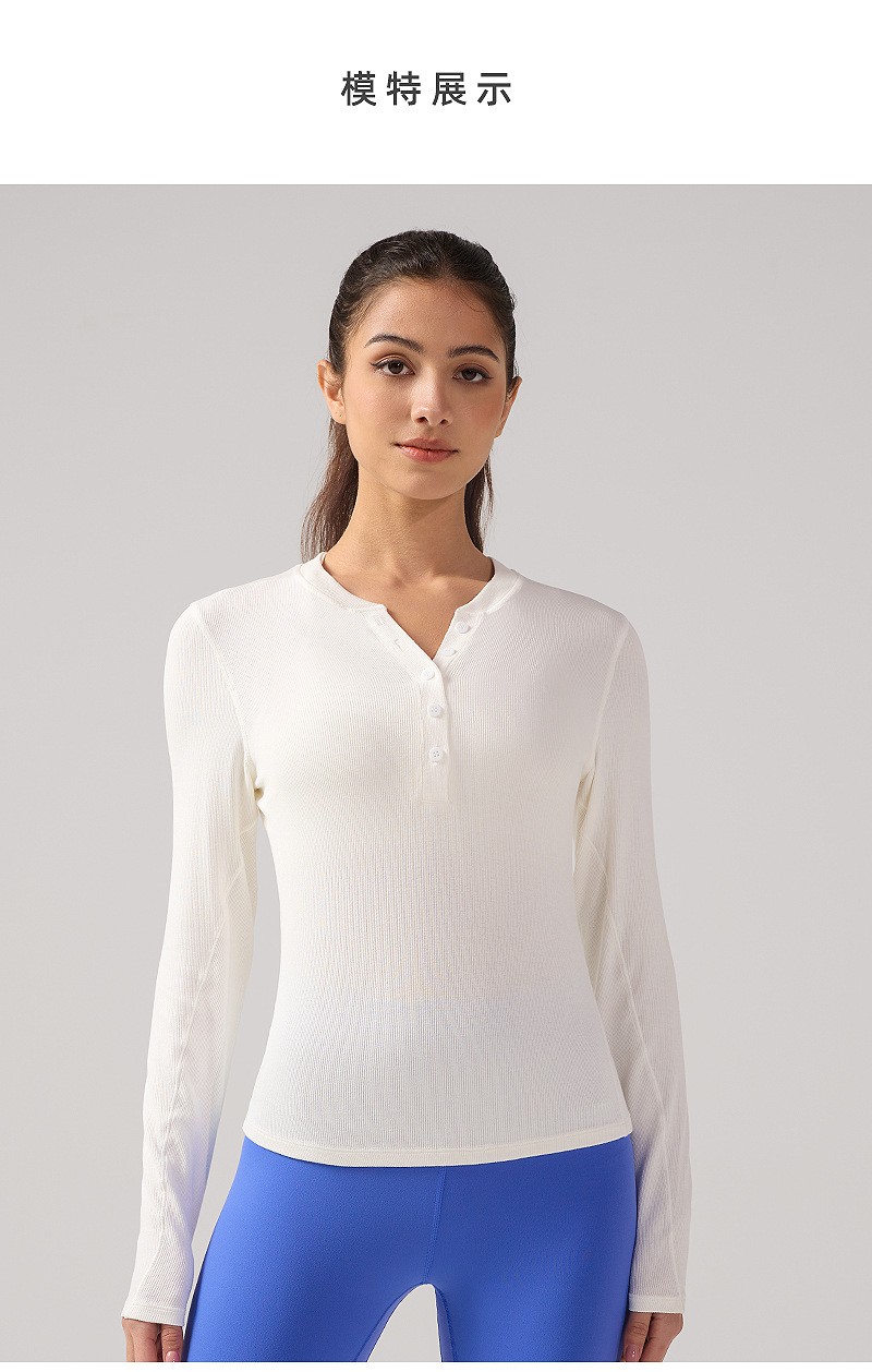 ヘンリー襟ヨガ長袖女性弾力修身吸湿排汗lulu同種運動訓練服