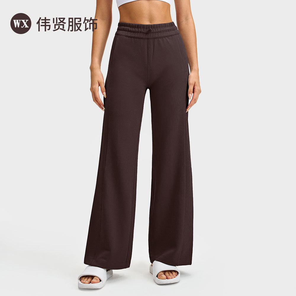 lulu阔腿直筒裤女罗纹高弹瑜伽裤速干透气高腰长裤运动健身户外