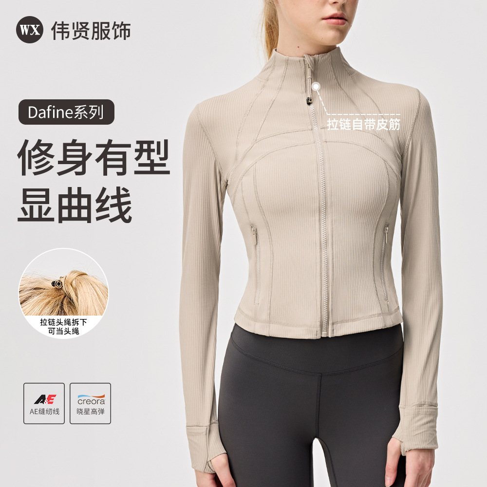 ルル スレッドジャケット 長袖 スタンドカラー レディース ジッパー 軽量 タイトフィット ヨガ フィットネス アウトドア スポーツ