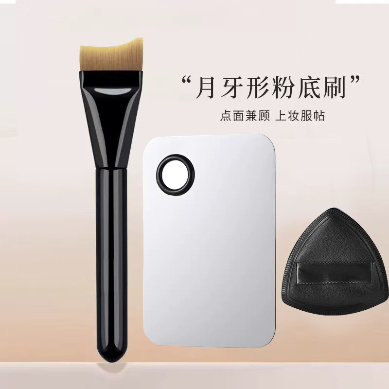 【下地化粧三点セット】一字平頭ファンデーションブラシシャベルファンデーションパレット指輪パレット盤上化粧神器