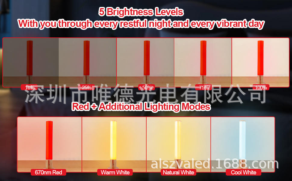 670NM红光灯,圆柱形360°发光;缓解偏头痛,失眠焦虑;