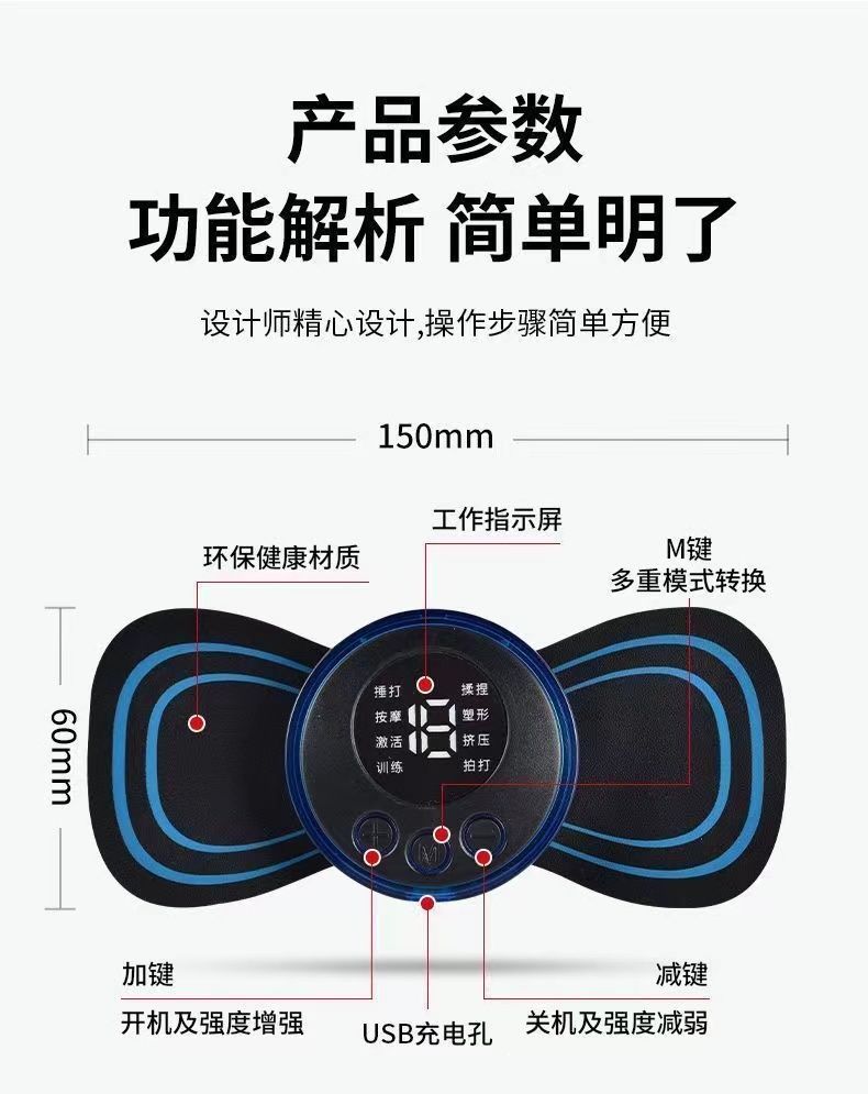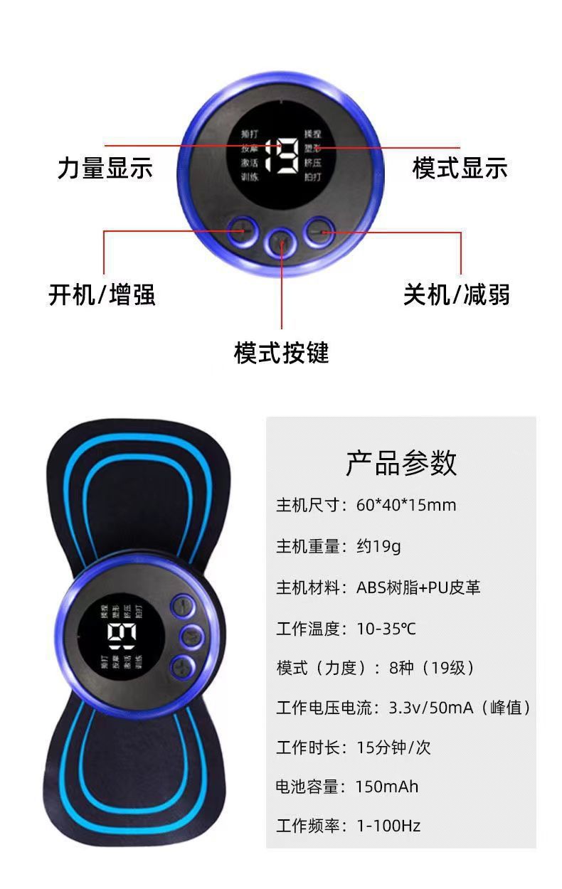 多機能パルスマッサージ貼付EMSミニ電気治療器家庭用頚椎首腕脚背中理学療法マッサージ
