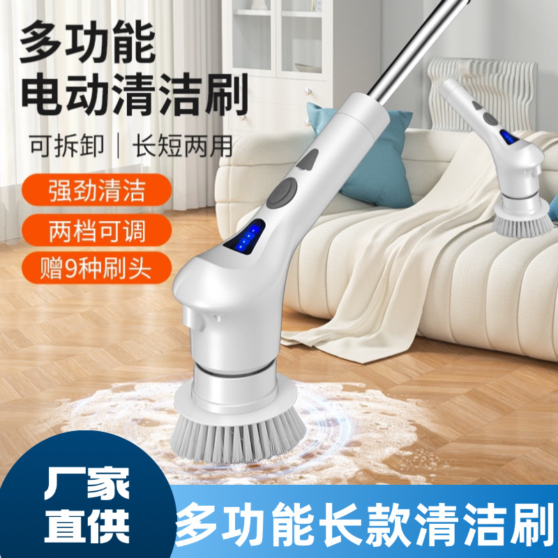 家庭用キッチン、バスルーム、トイレの床用の電動多機能クリーニングブラシ、長くて短い手持ちの強力なクリーニングアーティファクト